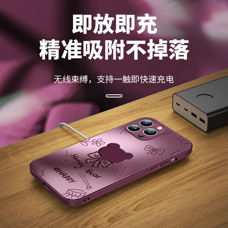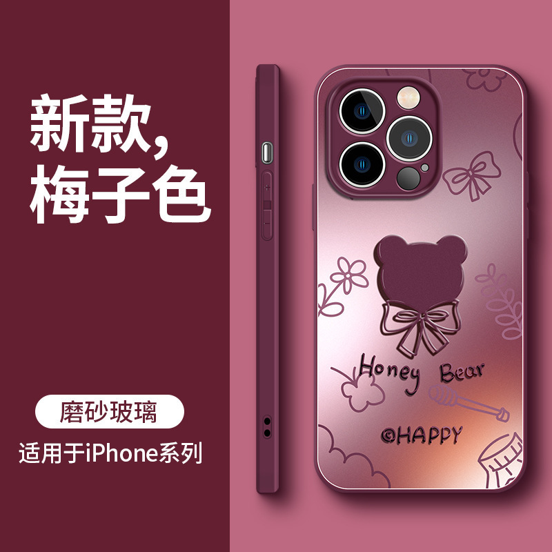 适用于苹果14手机壳梅子色新iPhone13简约创意12Promax磨砂玻璃11