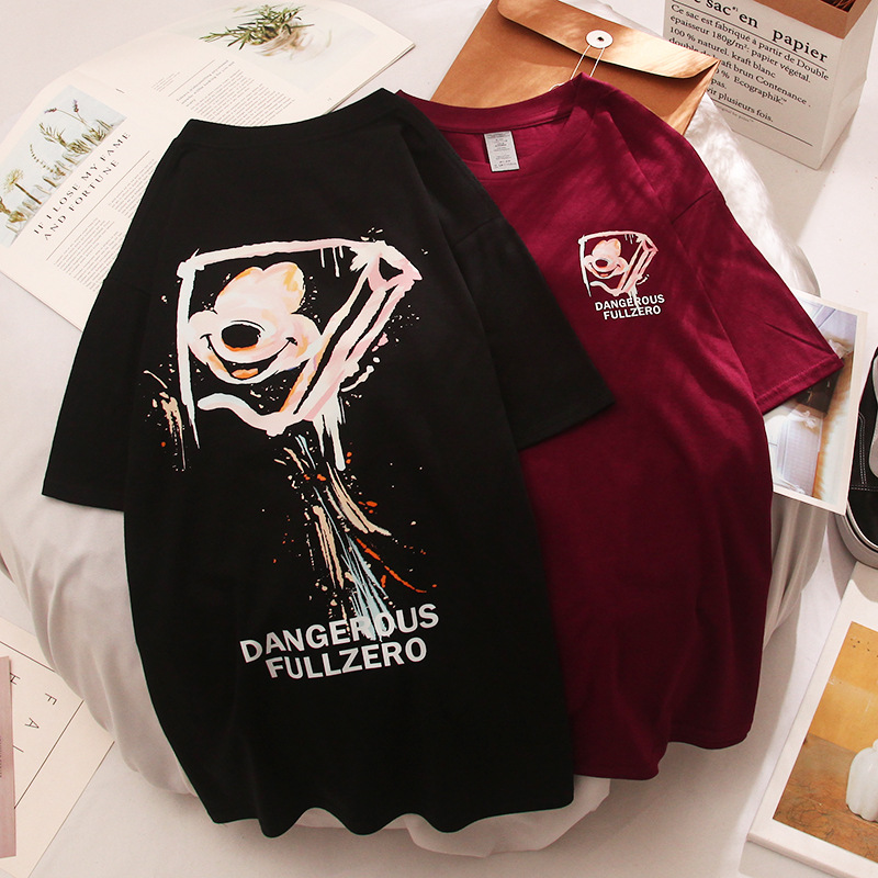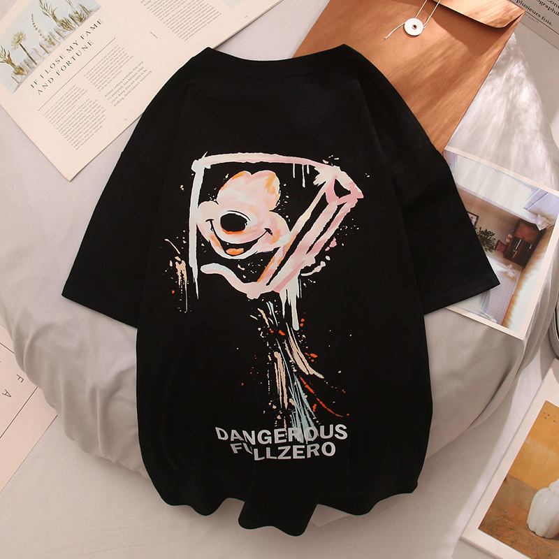夏季新款卡通字母印花休闲情侣装短袖T恤圆领宽松男女潮DT389