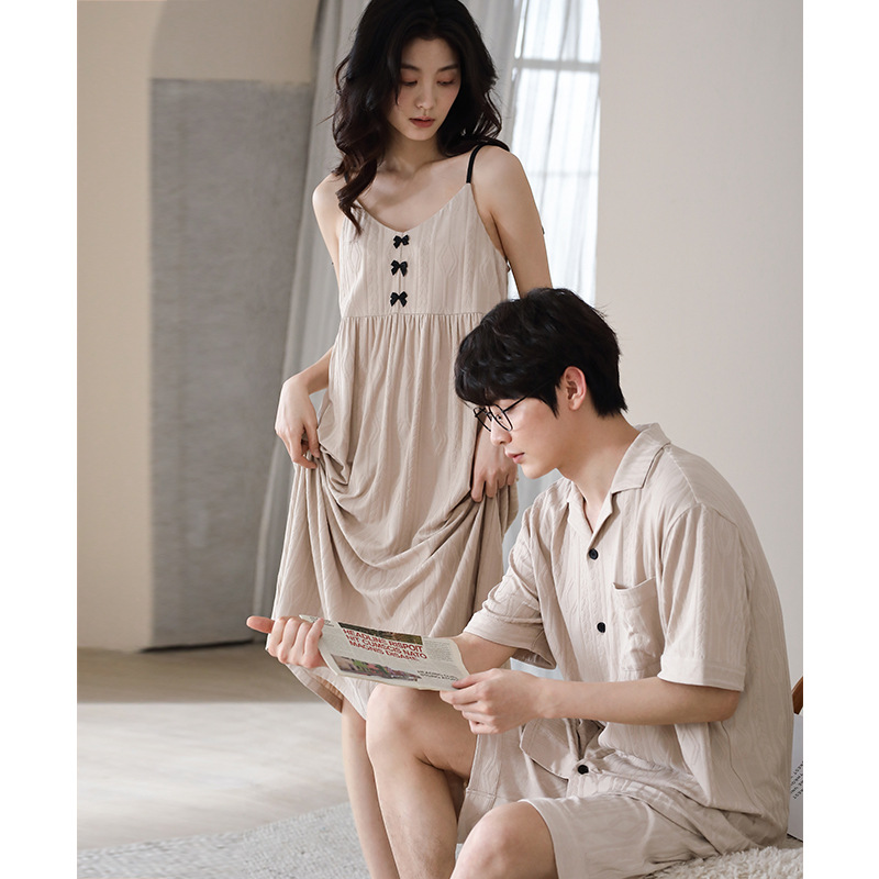 情侣睡衣莫代尔棉吊带睡裙女夏季纯欲风简约高级感男士家居服夏款