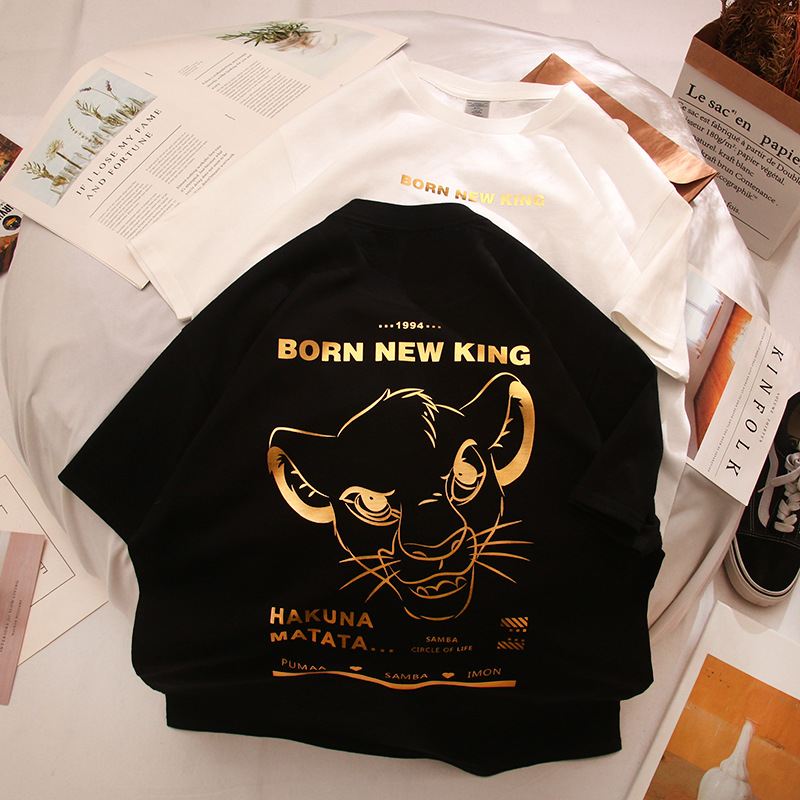 夏季新款卡通烫金印花字母情侣短袖T恤圆领休闲宽松半袖DT531