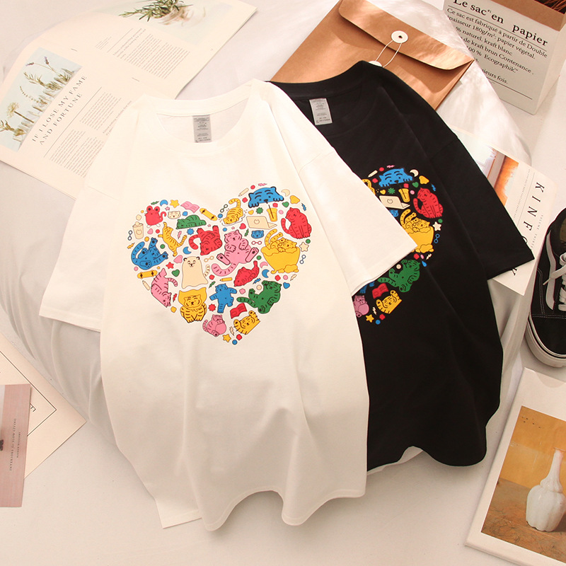 夏季新款卡通印花字母情侣短袖T恤男女圆领休闲宽松半袖DT525