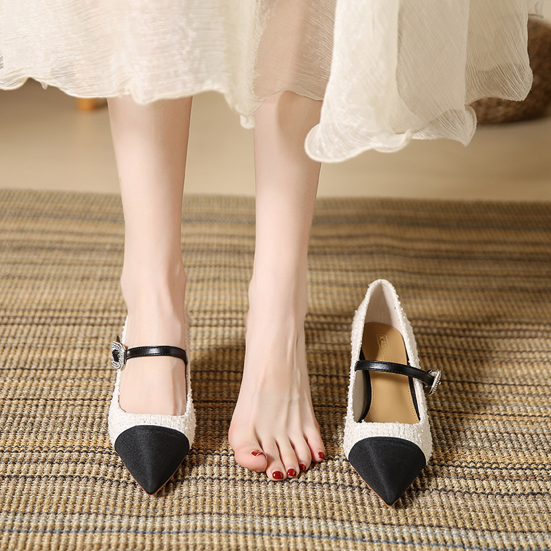 晚晚风温柔小香风拼色玛丽珍单鞋女网红百搭新款法式细跟高跟鞋
