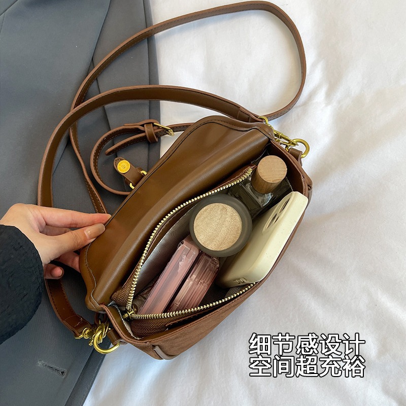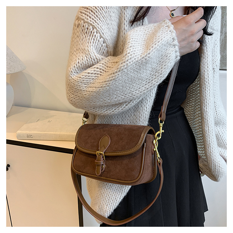 单肩包时尚休闲纯色质感麂皮绒马鞍包百搭通勤简约通勤包包