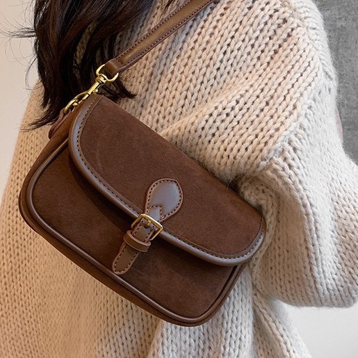 磨砂皮包包磁扣单肩斜挎包牛反绒
