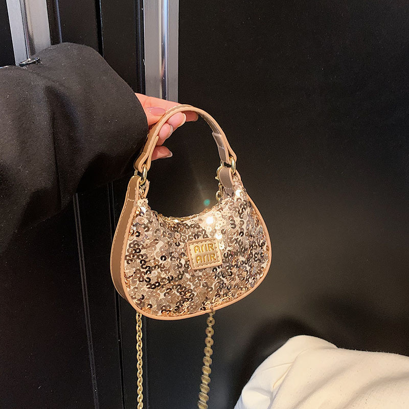 儿童包2025新款女童迷你亮片月牙腋下包洋气亲子链条斜挎包零钱包