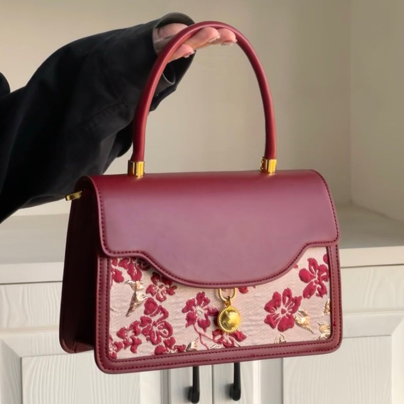 新中式国风刺绣红色新娘结婚包包新款复古大容量妈妈手提女包