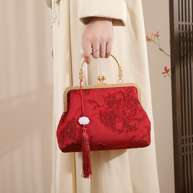 新中式红色新娘结婚包大气中年妈妈包配旗袍高级感单肩斜挎手提包