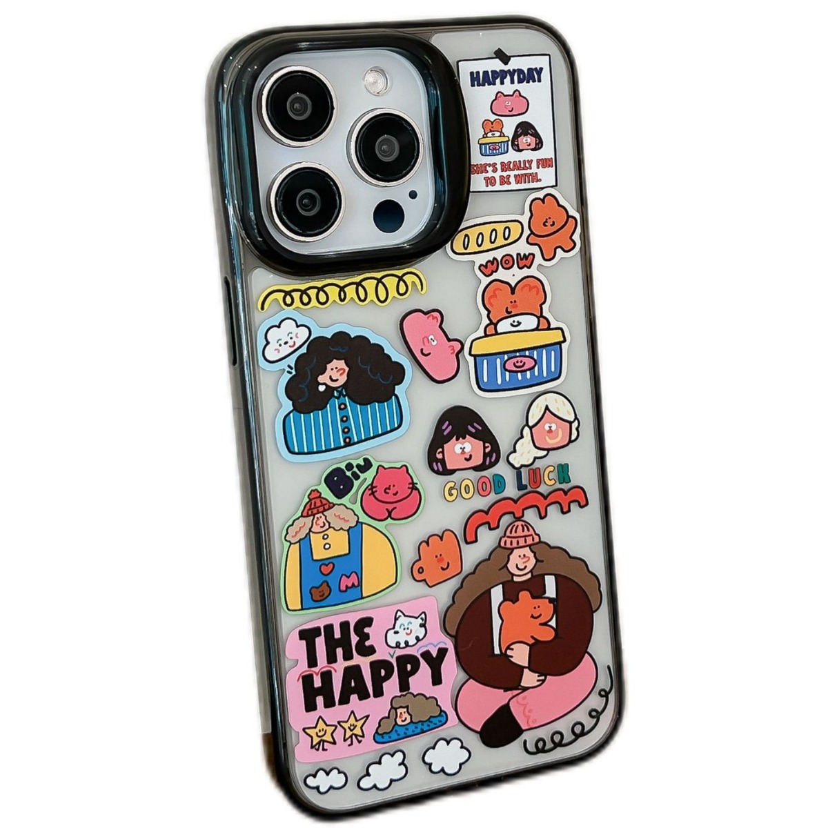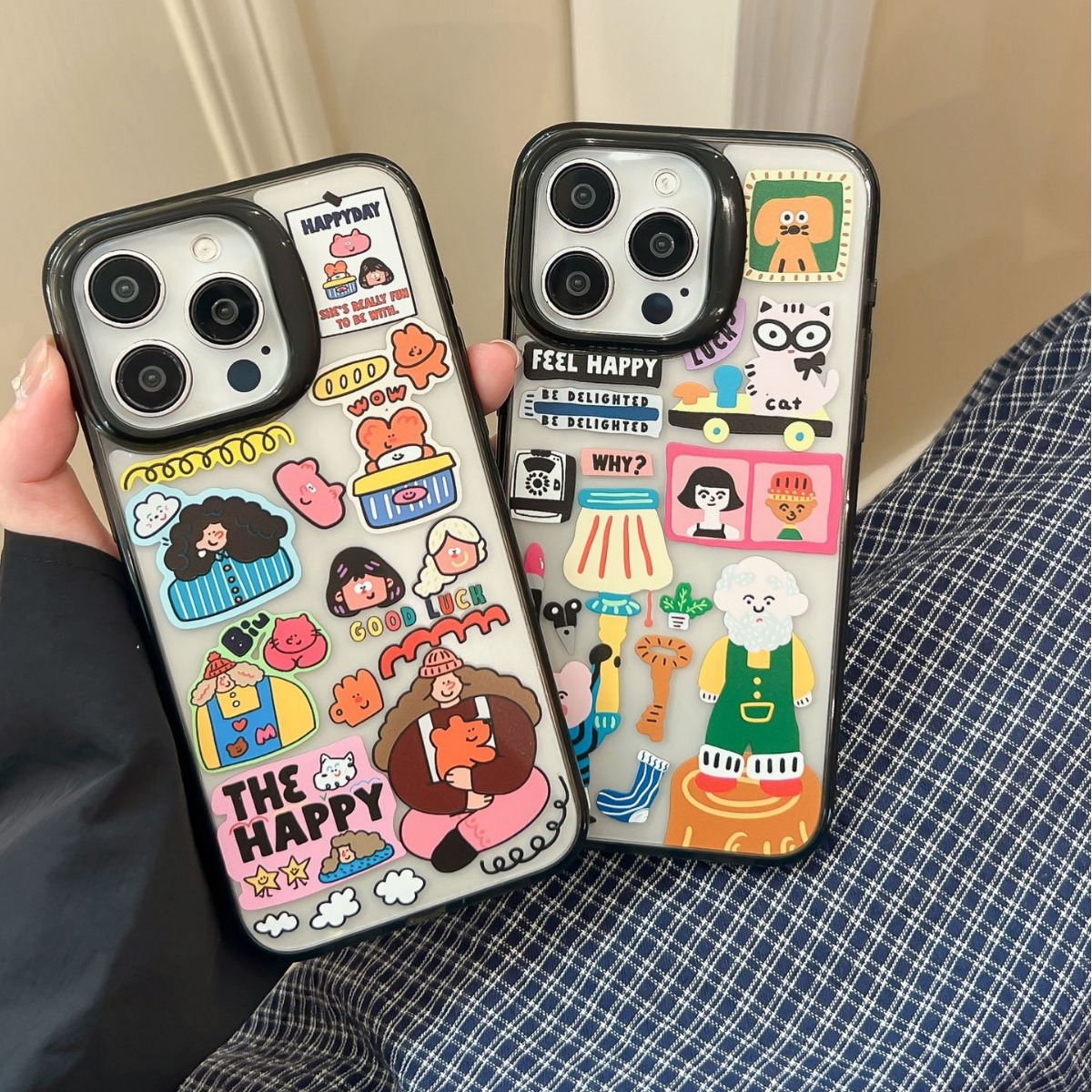 氧气狗新款虾片壳卡通人物涂鸦iPhone16promax苹果手机壳15