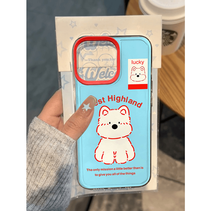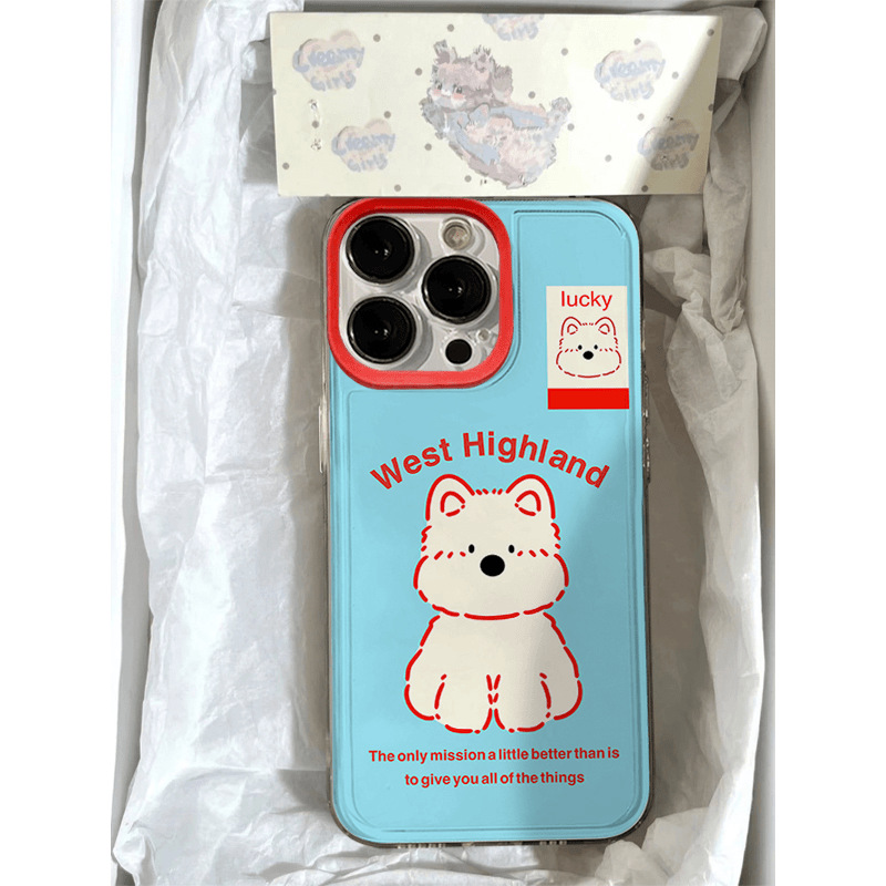 蓝色西高地小狗iPhone15promax手机壳苹果13/14全包12软11新款xR
