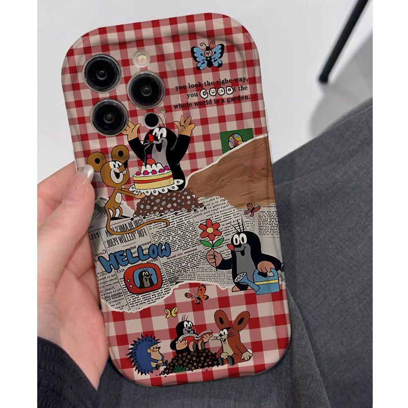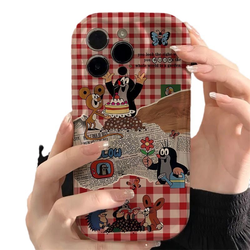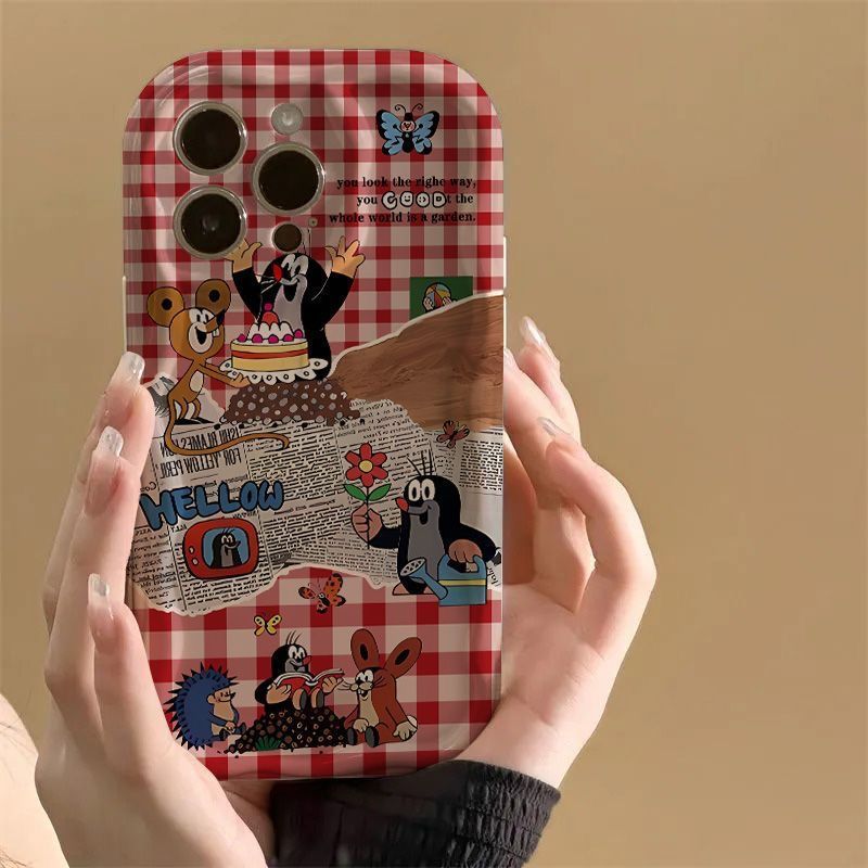 格子企鹅报纸苹果15promax手机壳12/13全包iphone14奶油款xs/xr/7