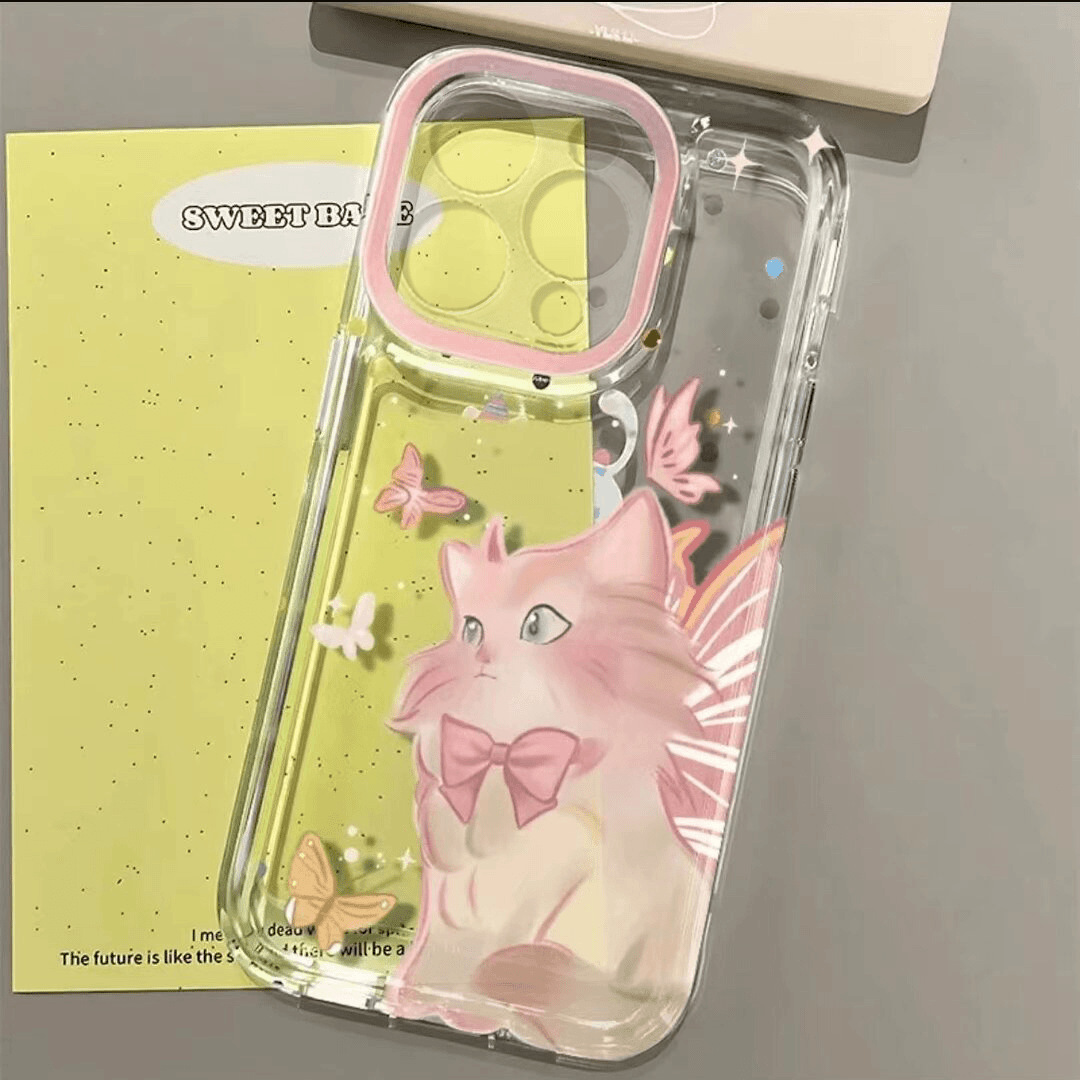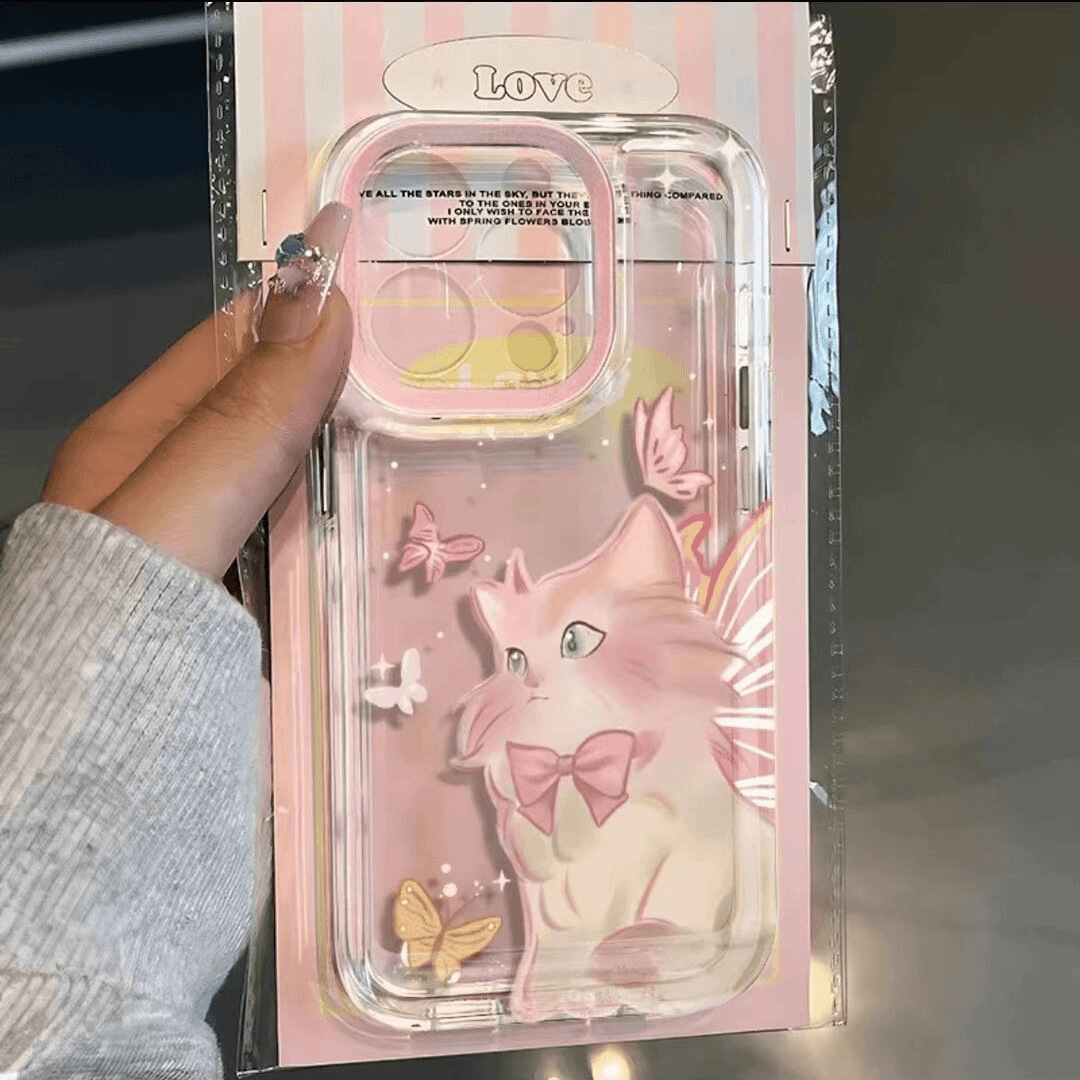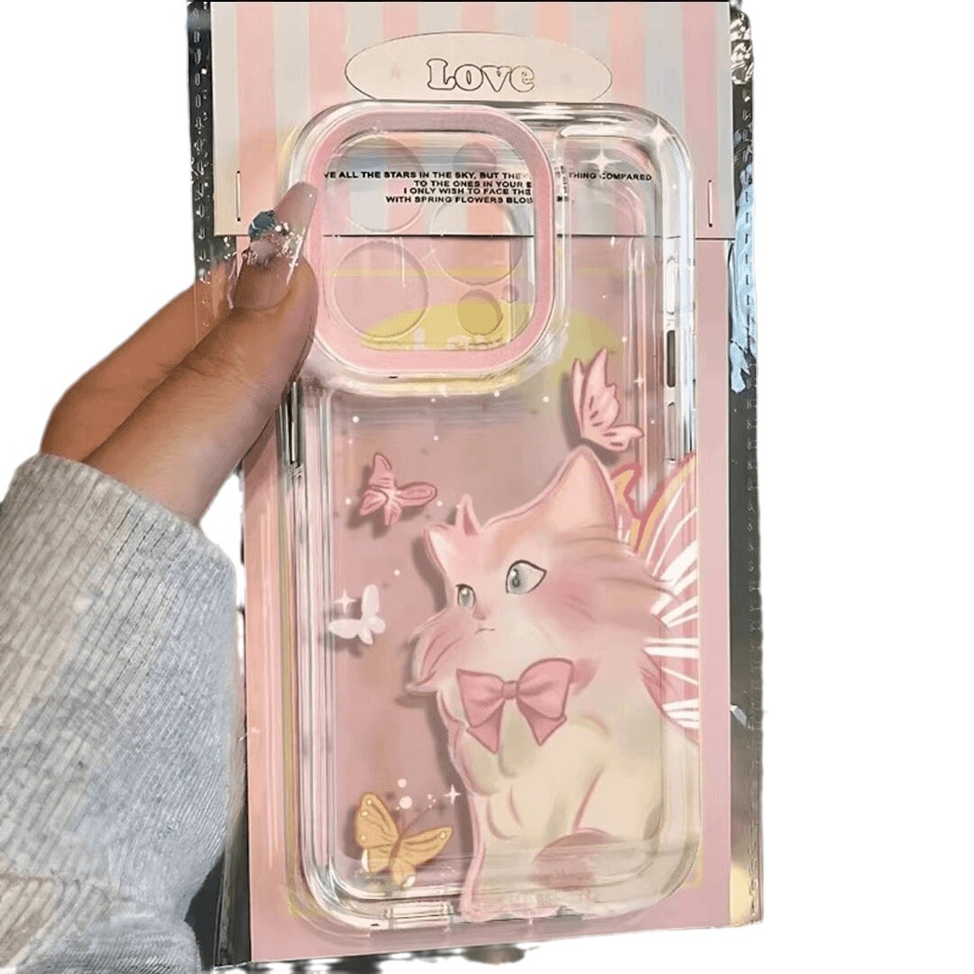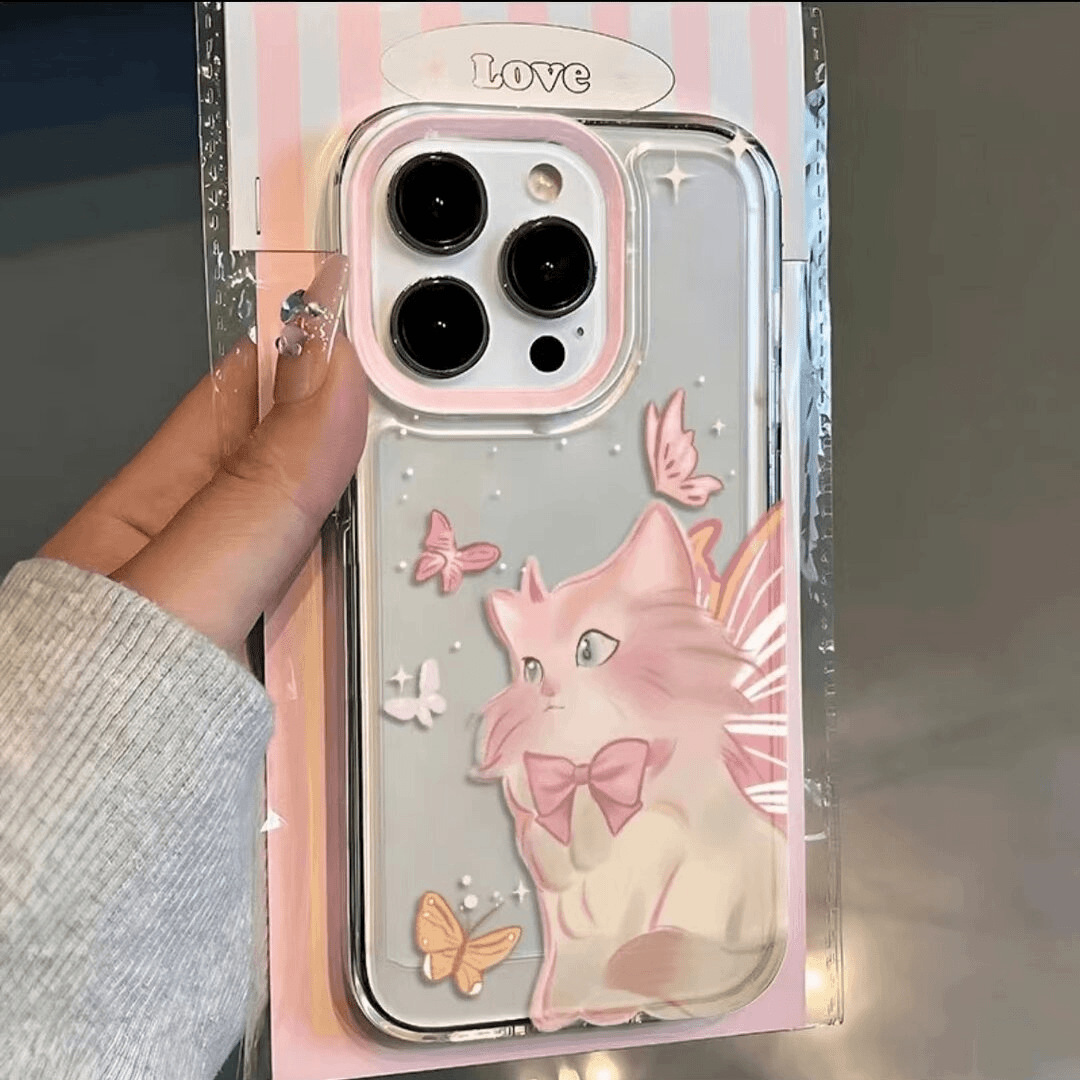 可爱蝴蝶粉猫适用苹果15PROMAX手机壳iPhone14/13软壳12清新11/XS