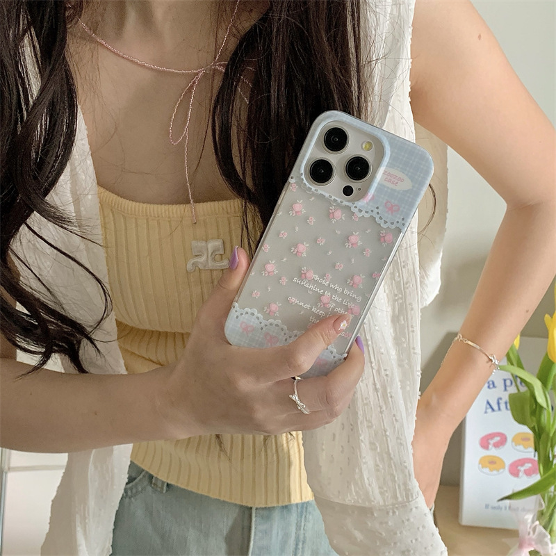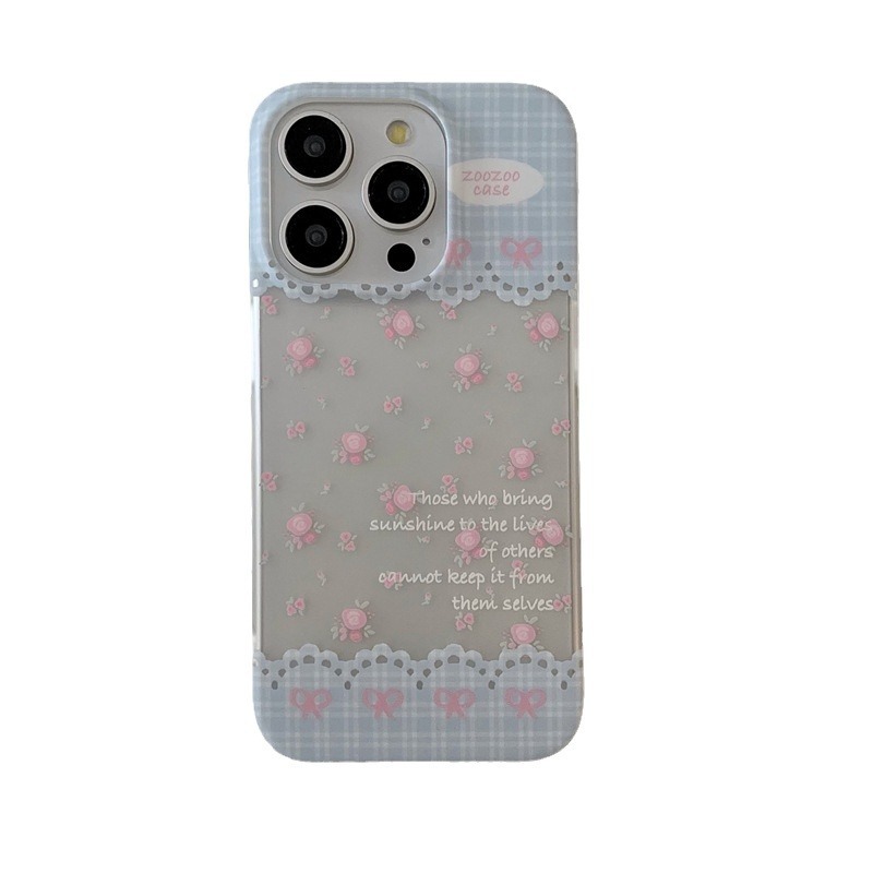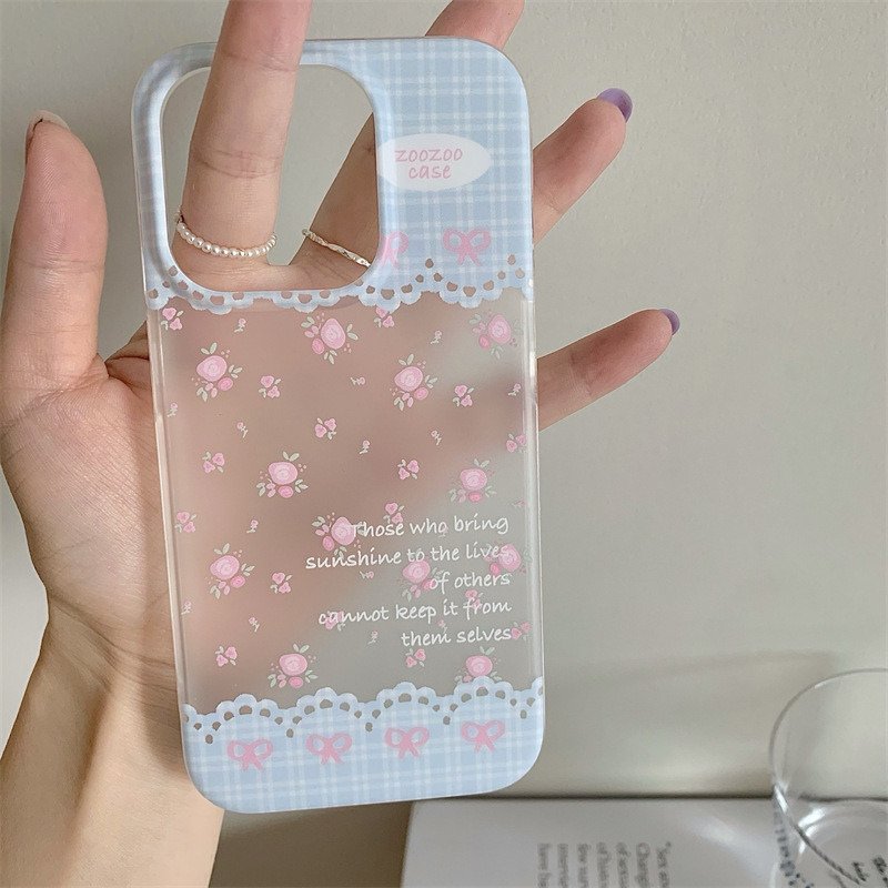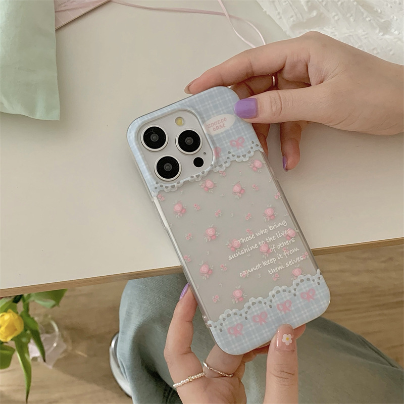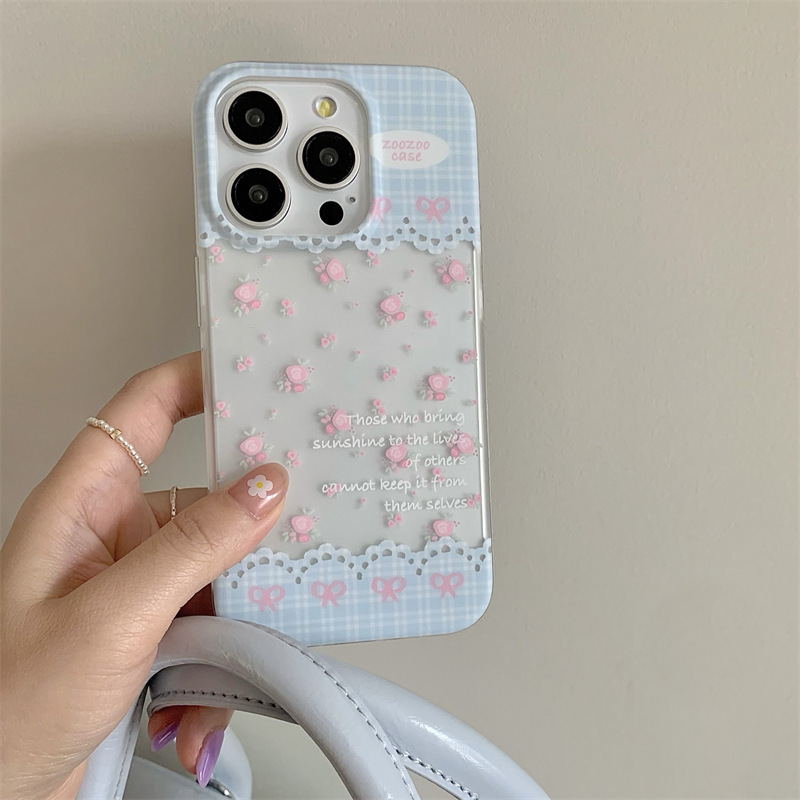 蓝蕾丝格子蝴蝶结适用苹果15ProMax手机壳iphone12/13/14双层全包