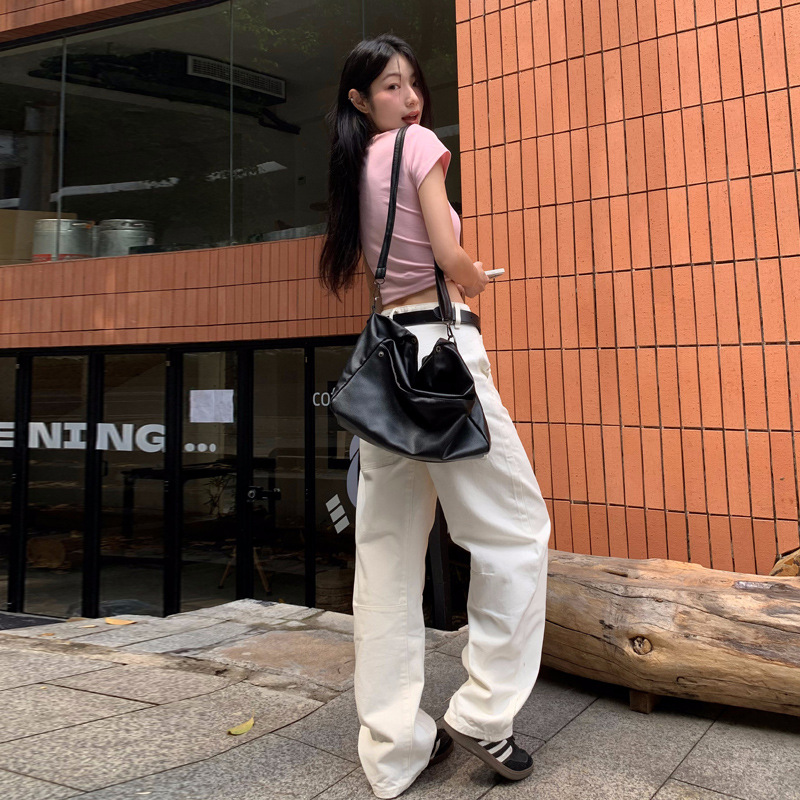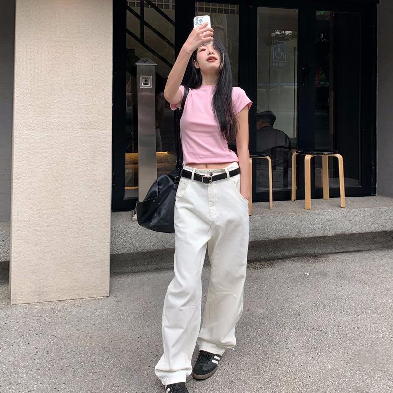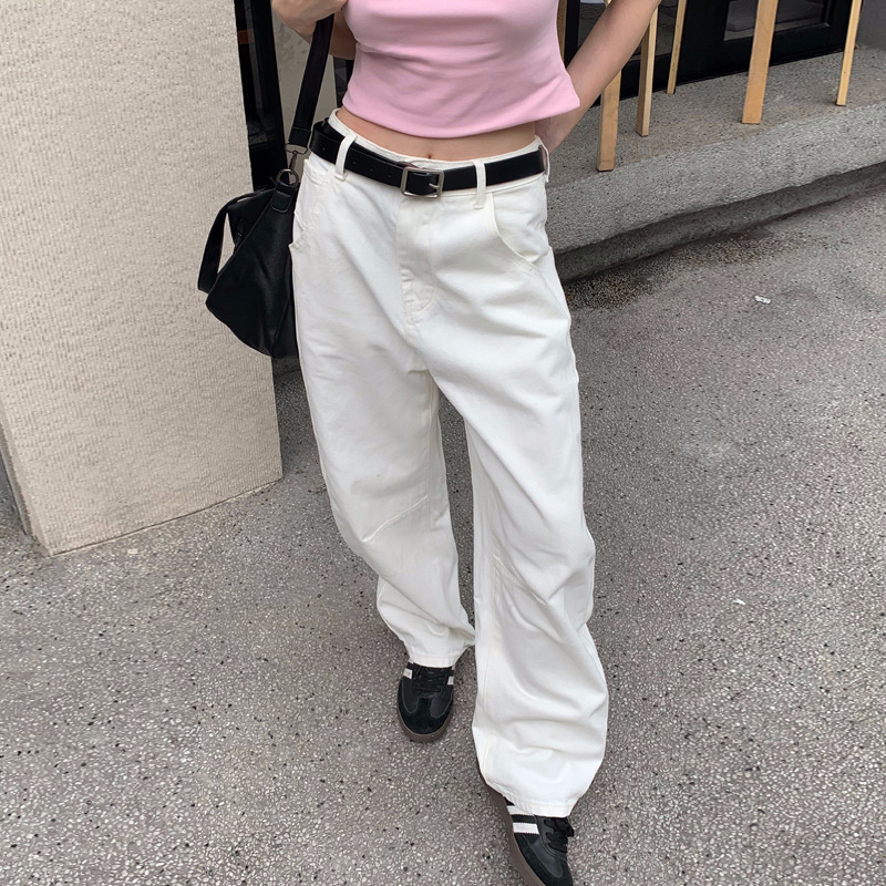 铭海新款白色镰刀裤牛仔裤女宽松显瘦阔腿裤长裤子
