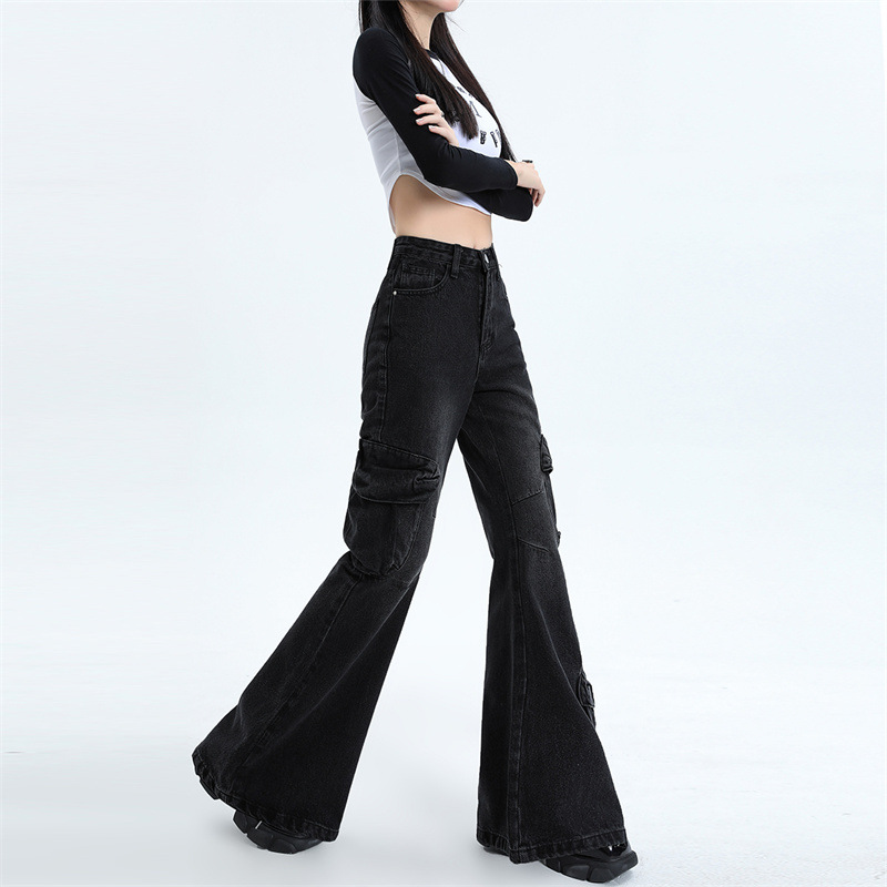 铭海美式辣妹工装裤女秋季新款高腰显瘦宽松微辣牛仔裤女长裤