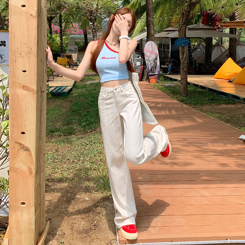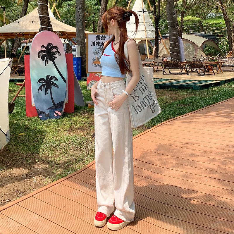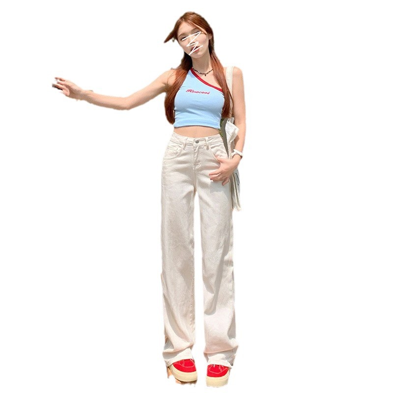 新款白色莱赛尔天丝牛仔裤女春夏高腰宽松垂感窄款阔腿拖地裤