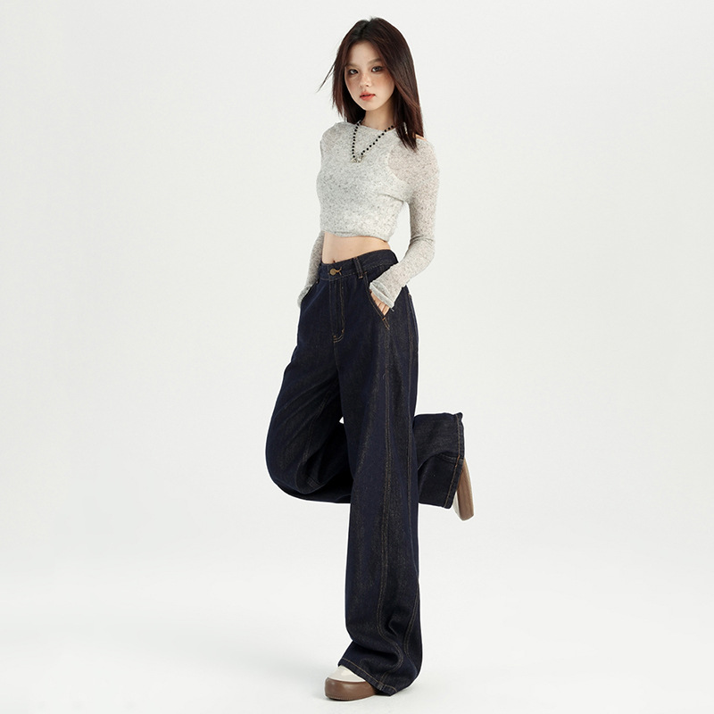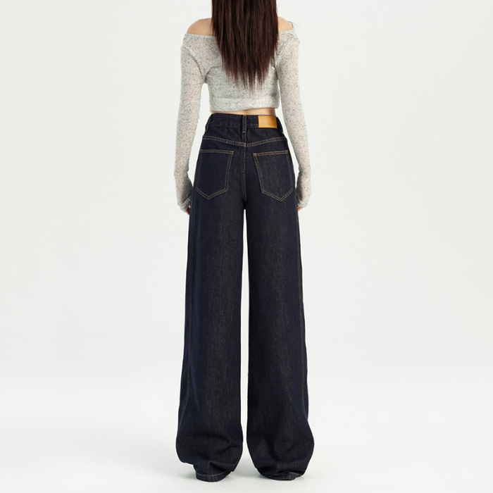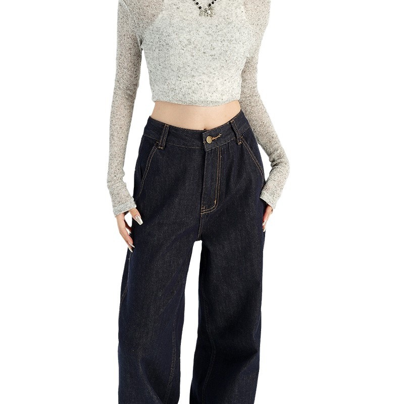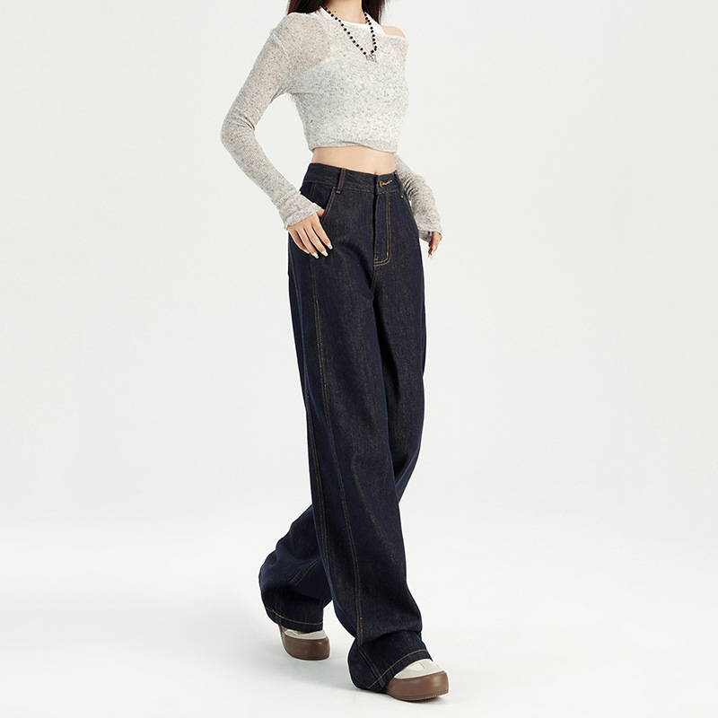 铭海 梨型身材粗腿宽胯阔腿牛仔裤女秋季新款高腰宽松直筒裤