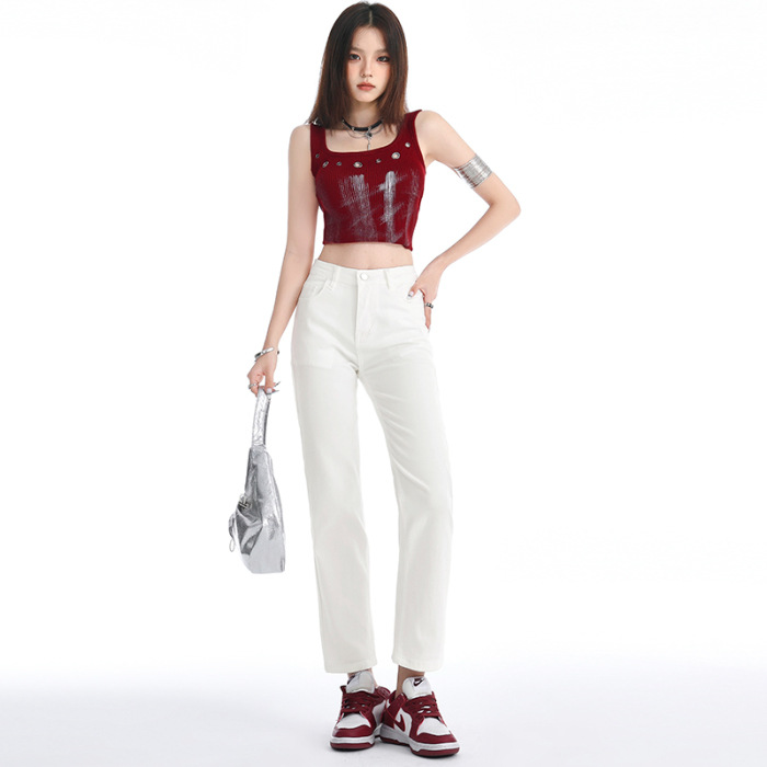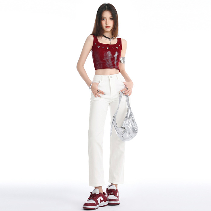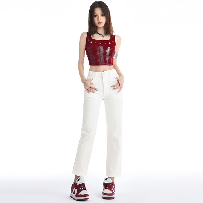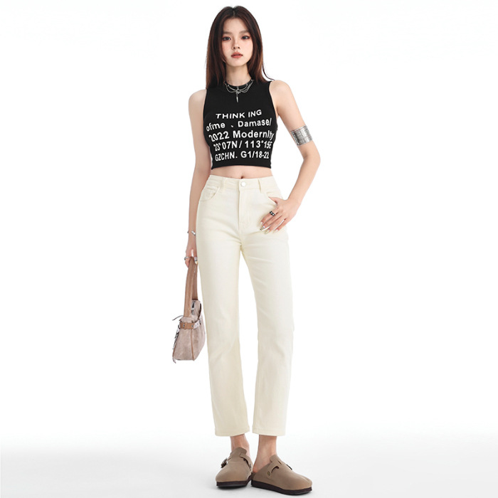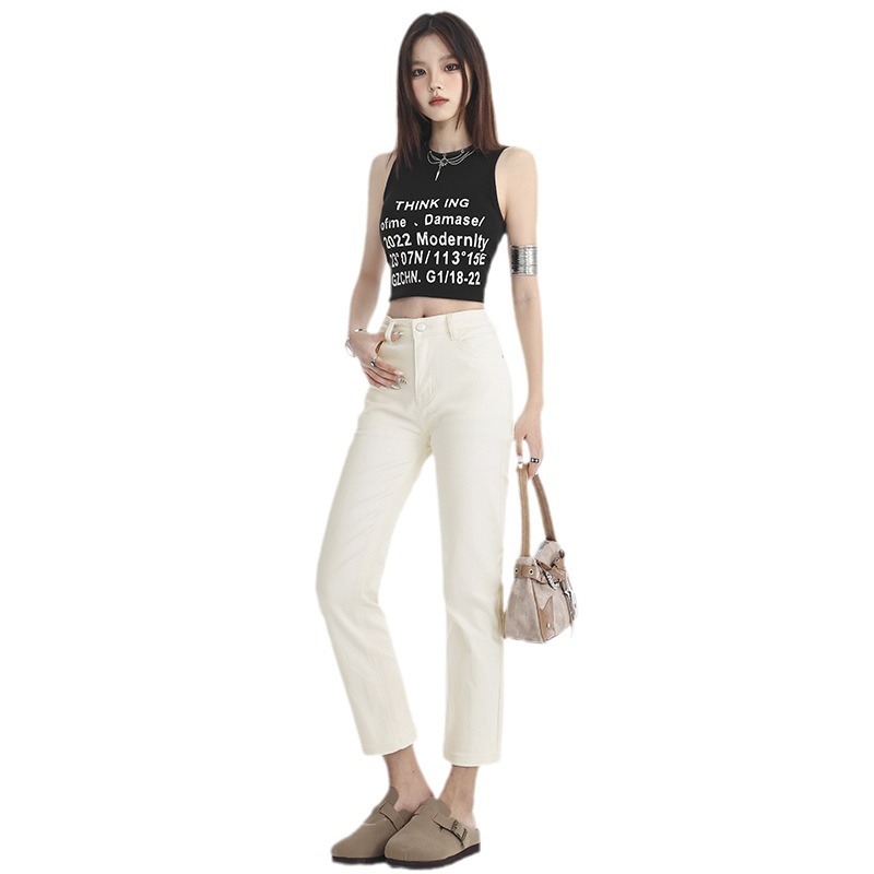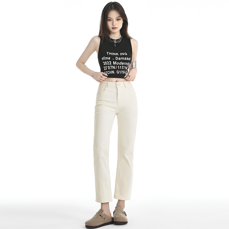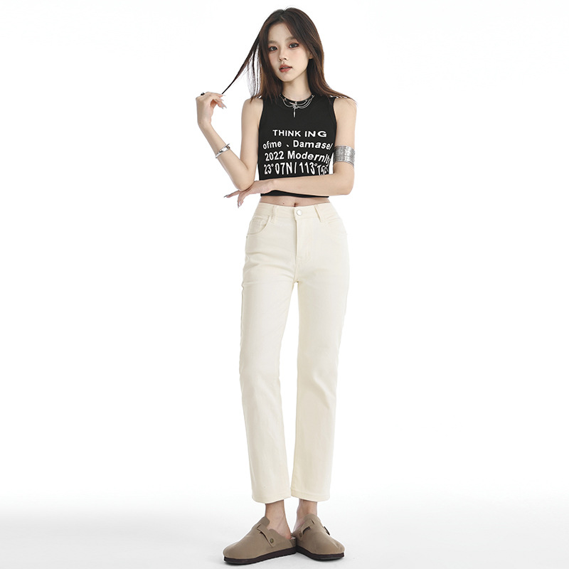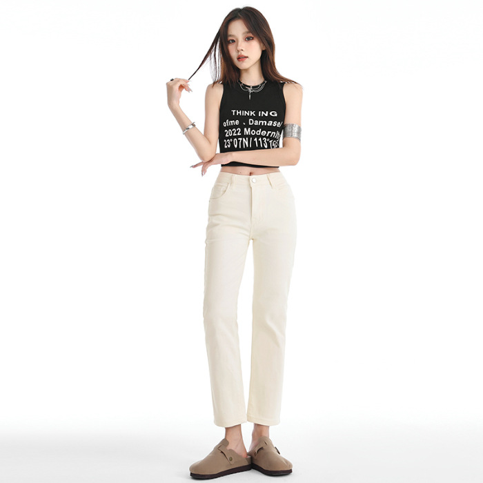 三防面料弹力显瘦直筒裤夏季新款修身薄款烟管牛仔裤女小个子