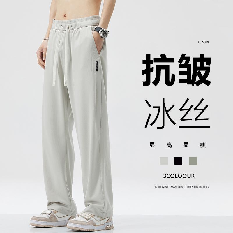 美式复古冰丝裤夏季新款简约垂感宽松直筒潮牌显瘦松紧腰休闲长裤