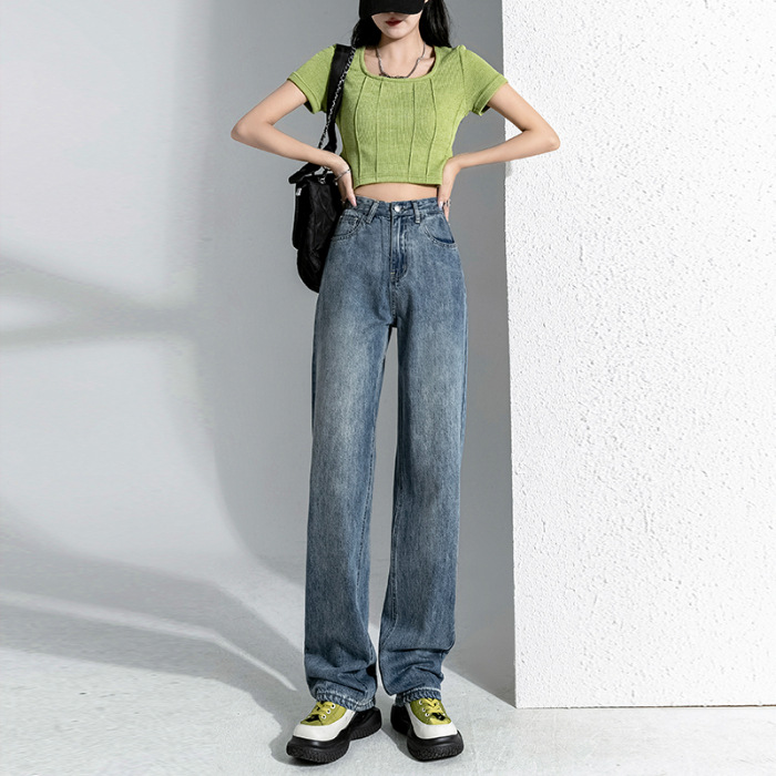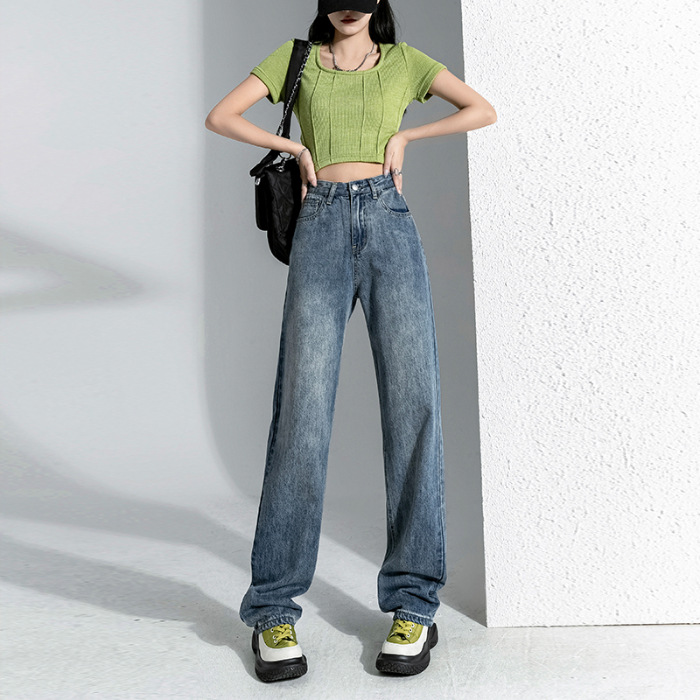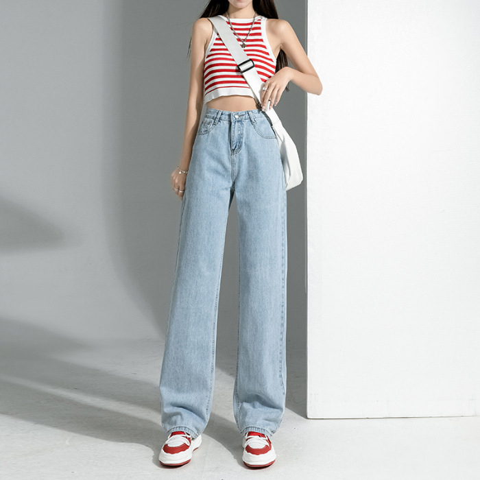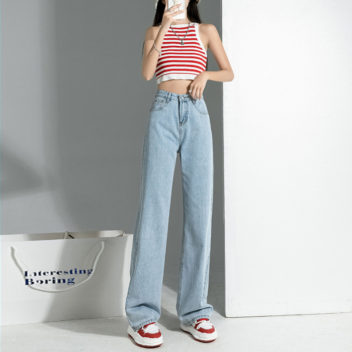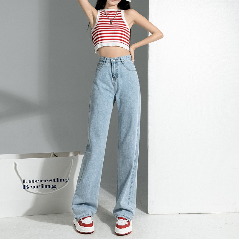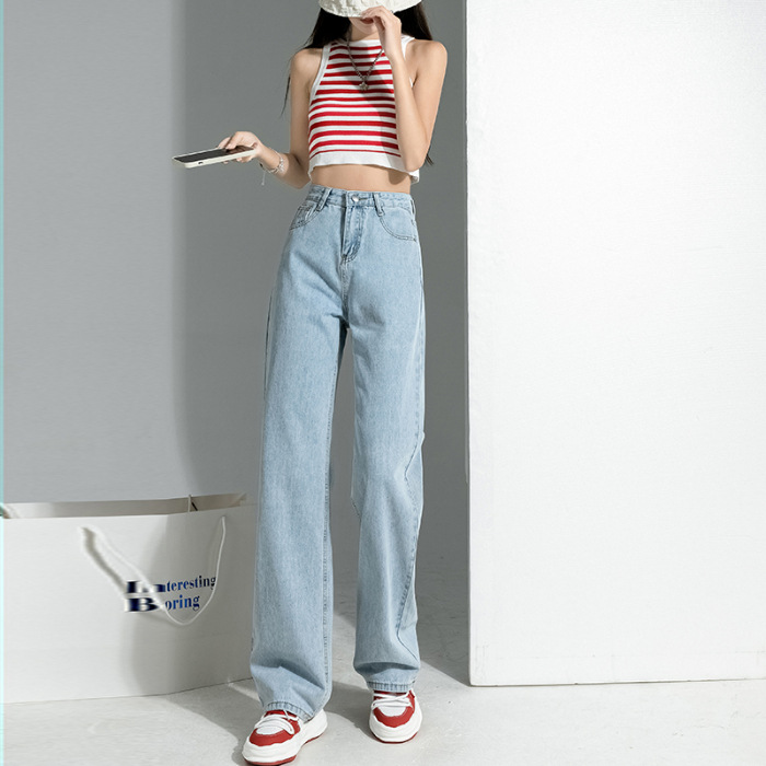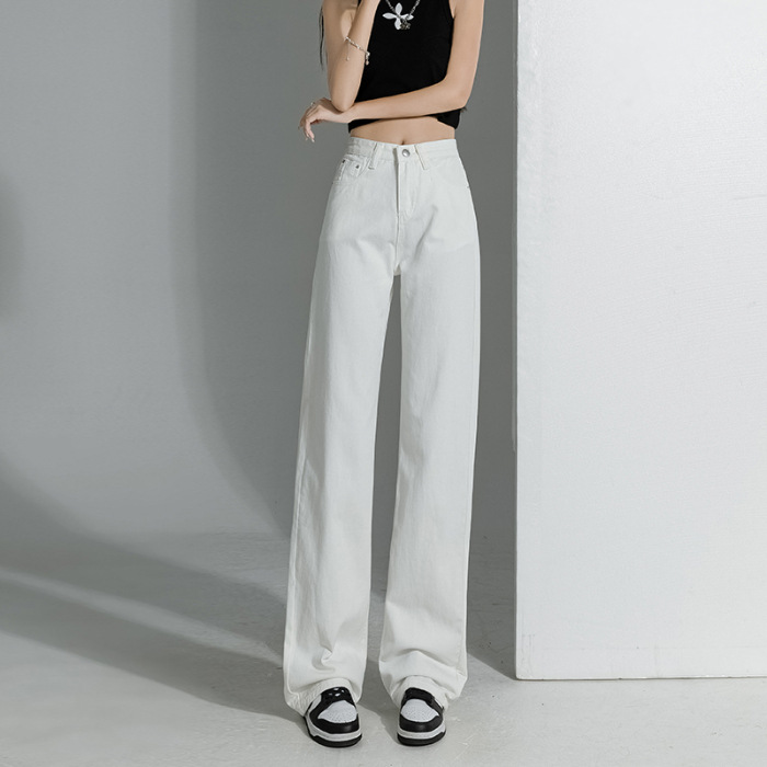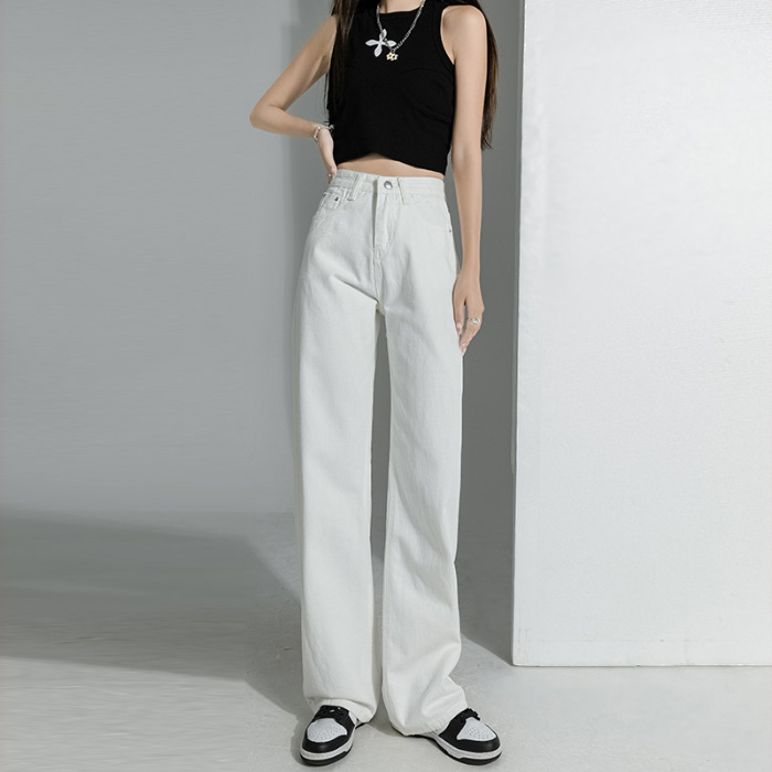 白色直筒牛仔裤女春夏新款高腰显瘦修身小个子窄款阔腿裤宽松女裤