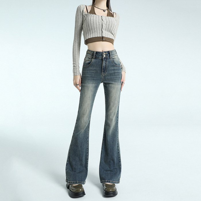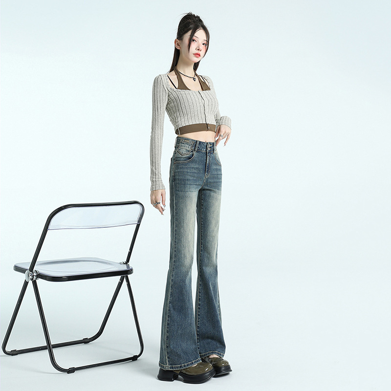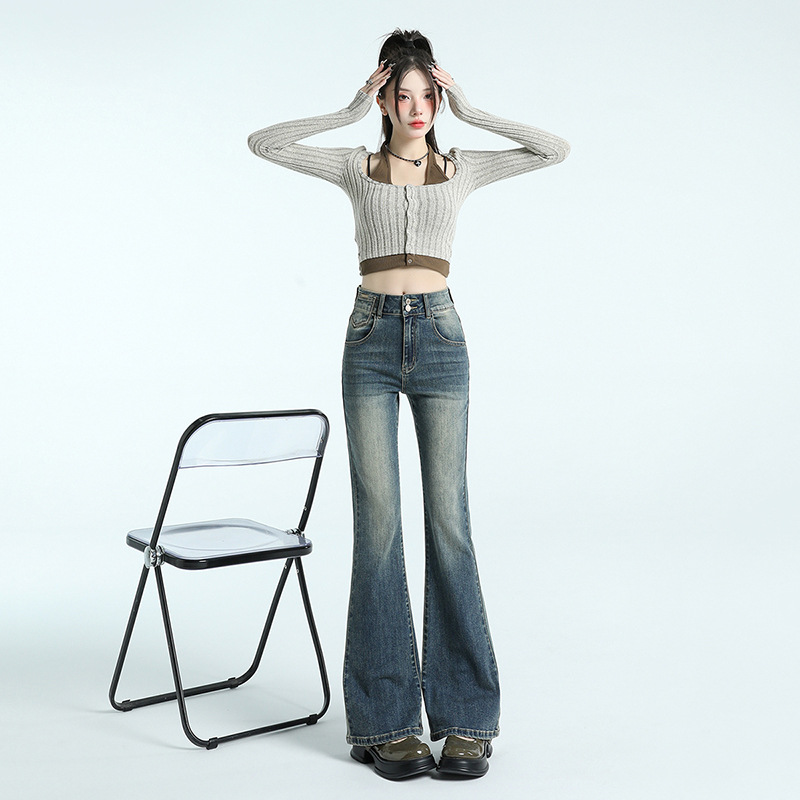 铭海年秋季新款微喇叭牛仔裤女高腰弹力修身显瘦小个子马蹄裤