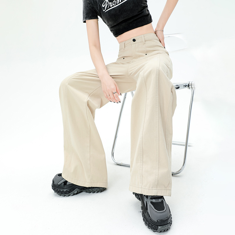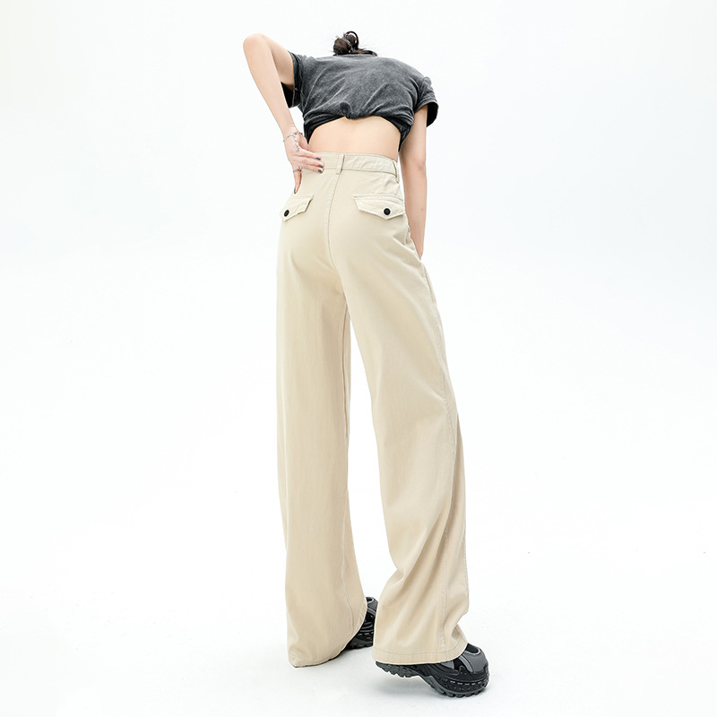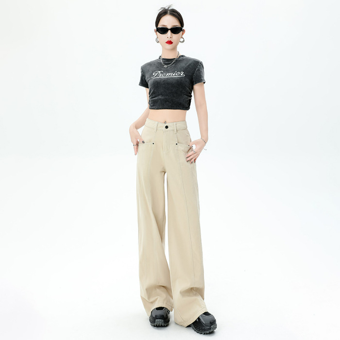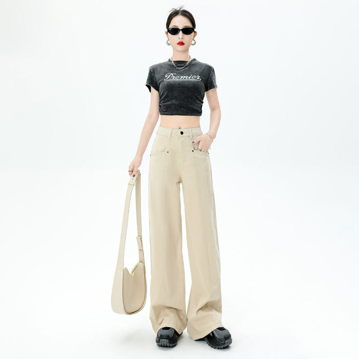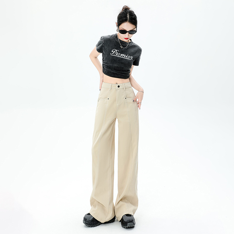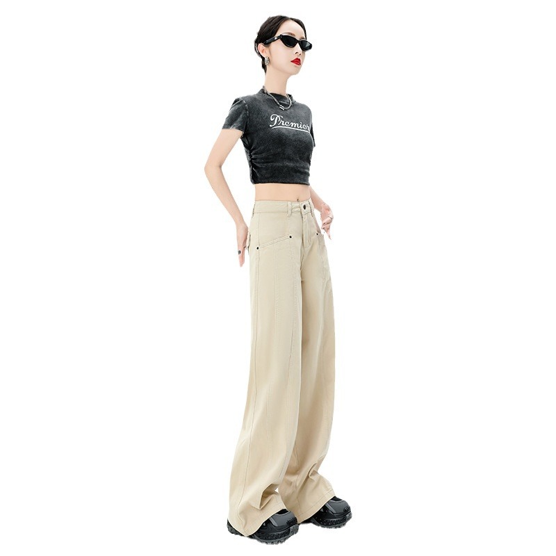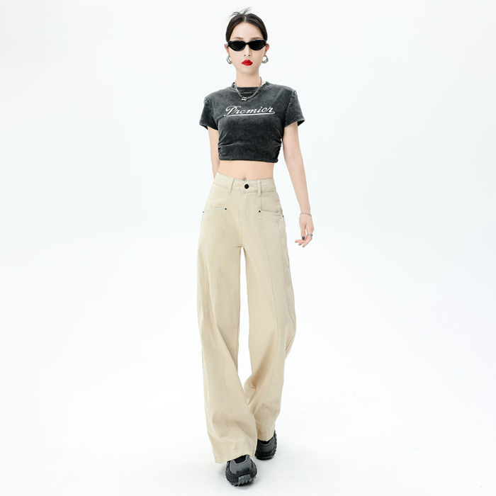 美式休闲工装裤女夏季年春秋新款高腰宽松垂感直筒阔腿牛仔裤