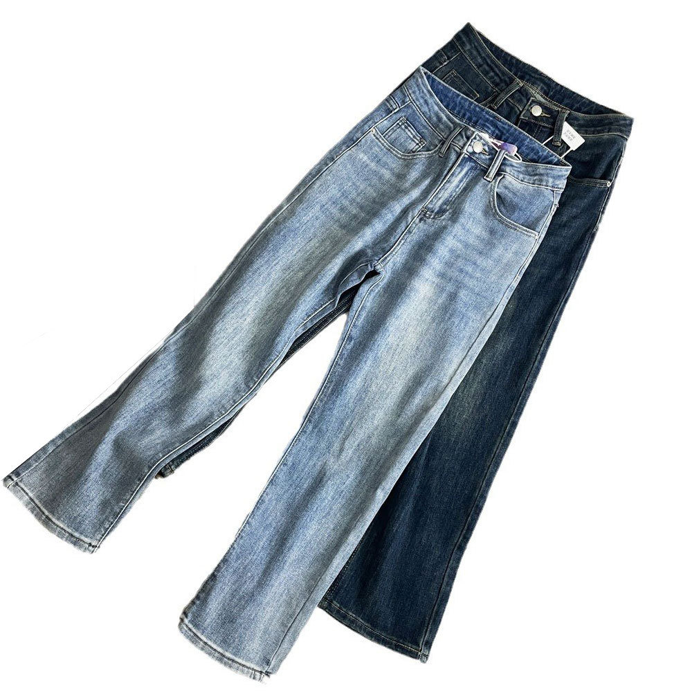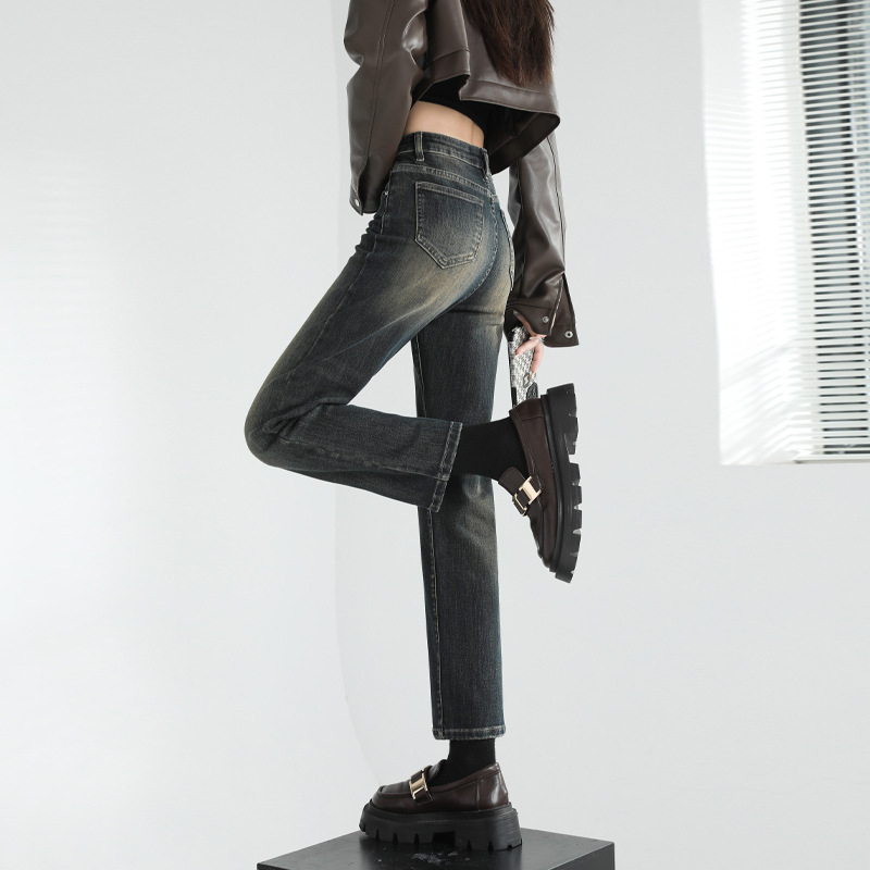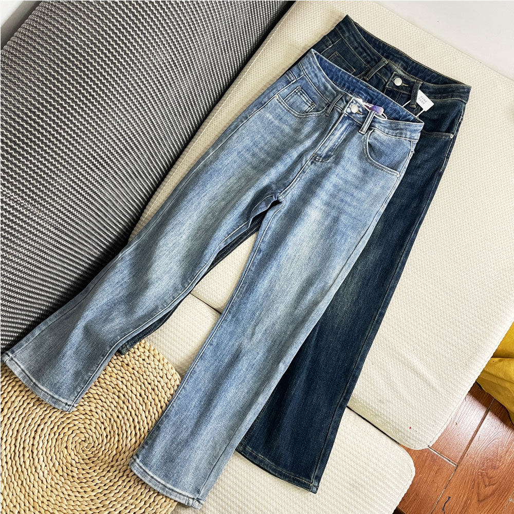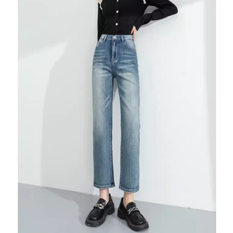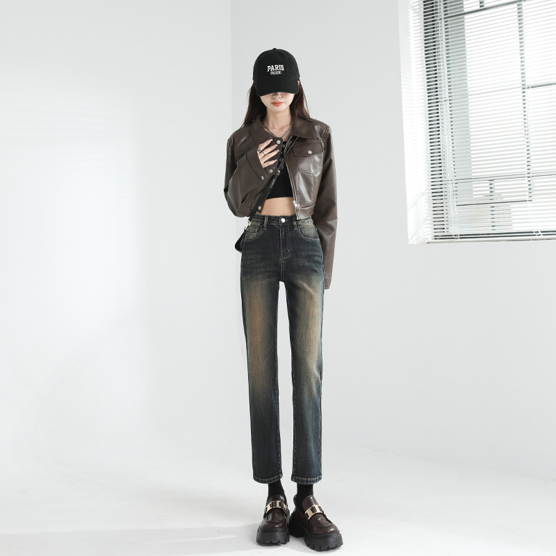 小个子直筒烟管裤春季新款高腰修身显瘦法棍裤女士牛仔裤