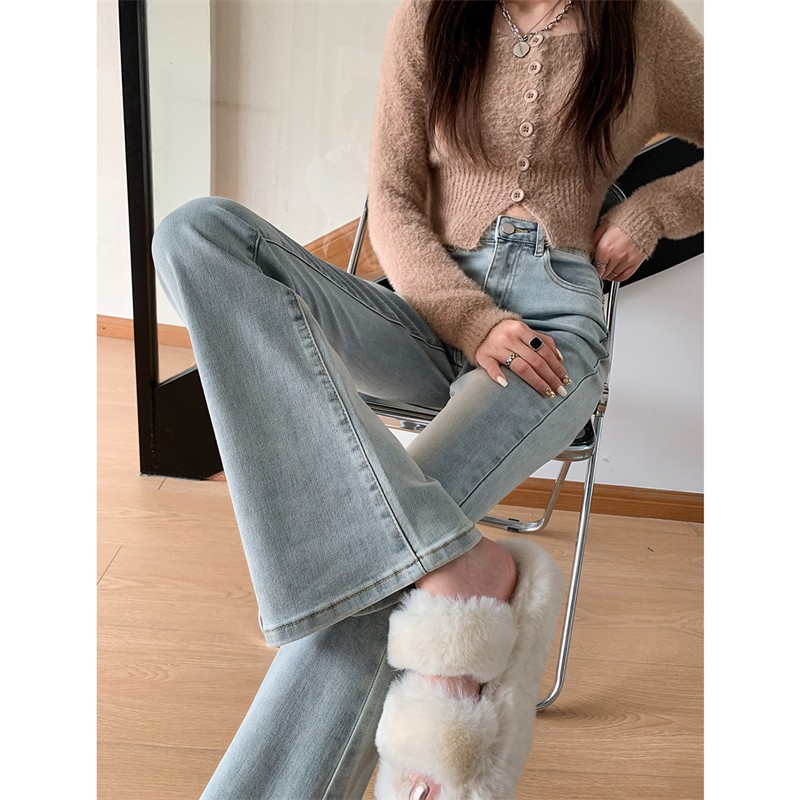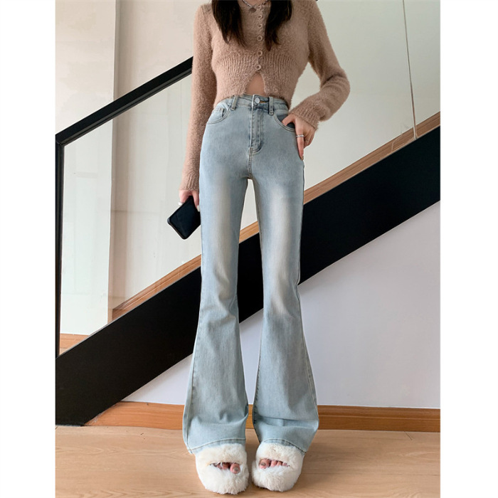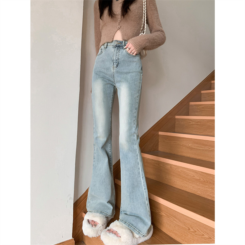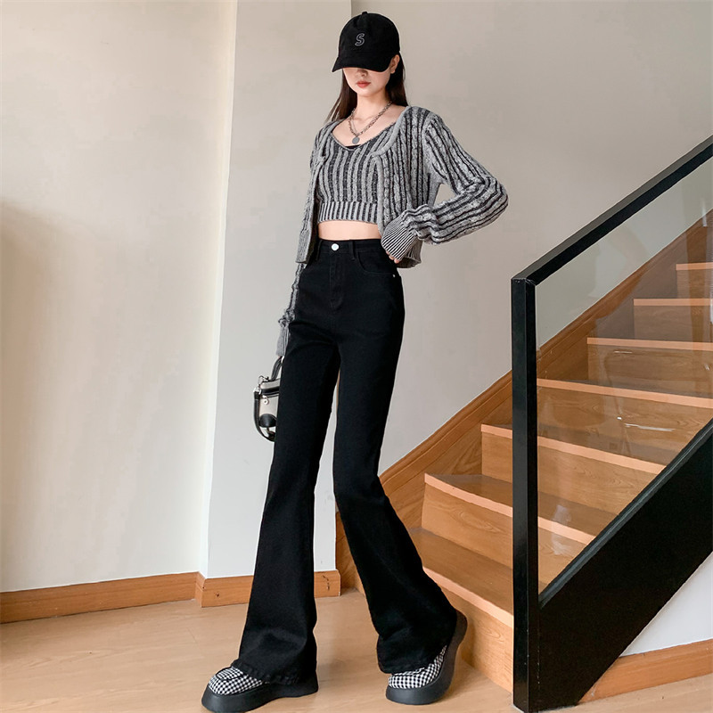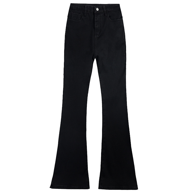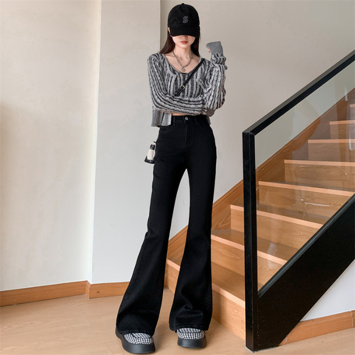 铭海黑色高弹微喇叭牛仔裤女显瘦秋季新款修身小个子马蹄长裤
