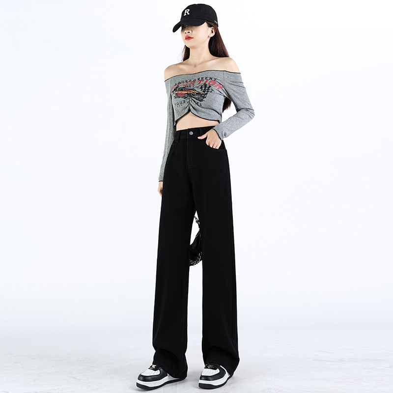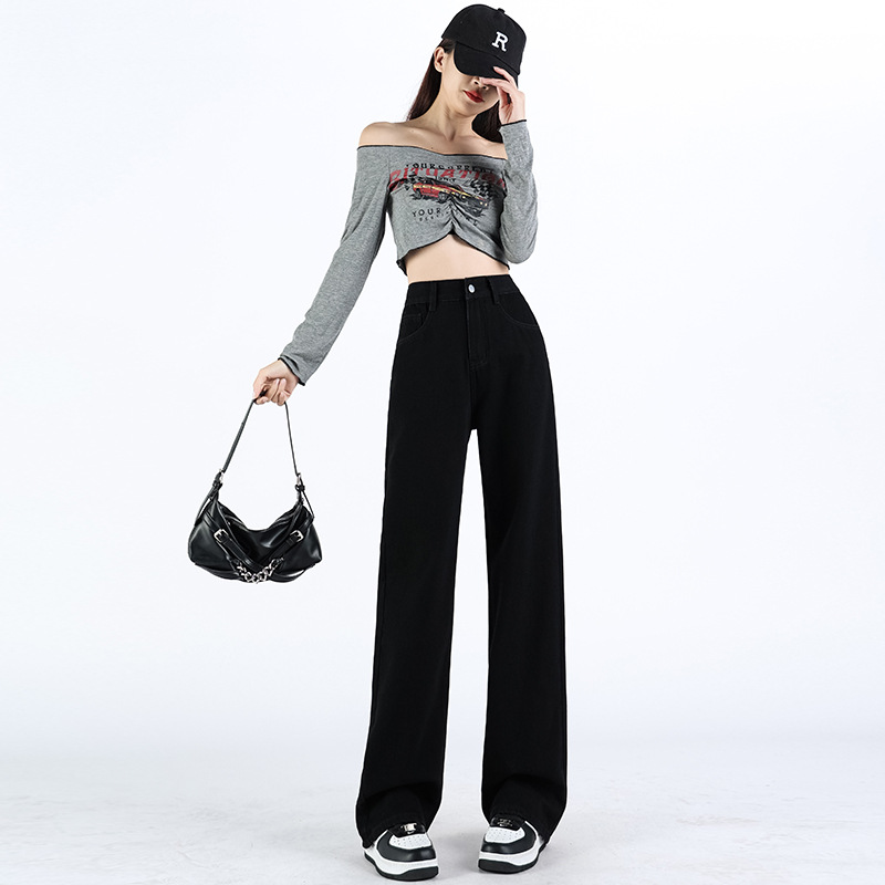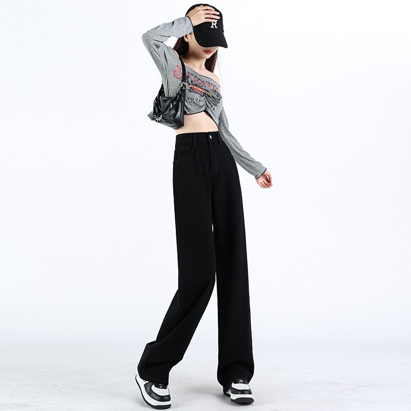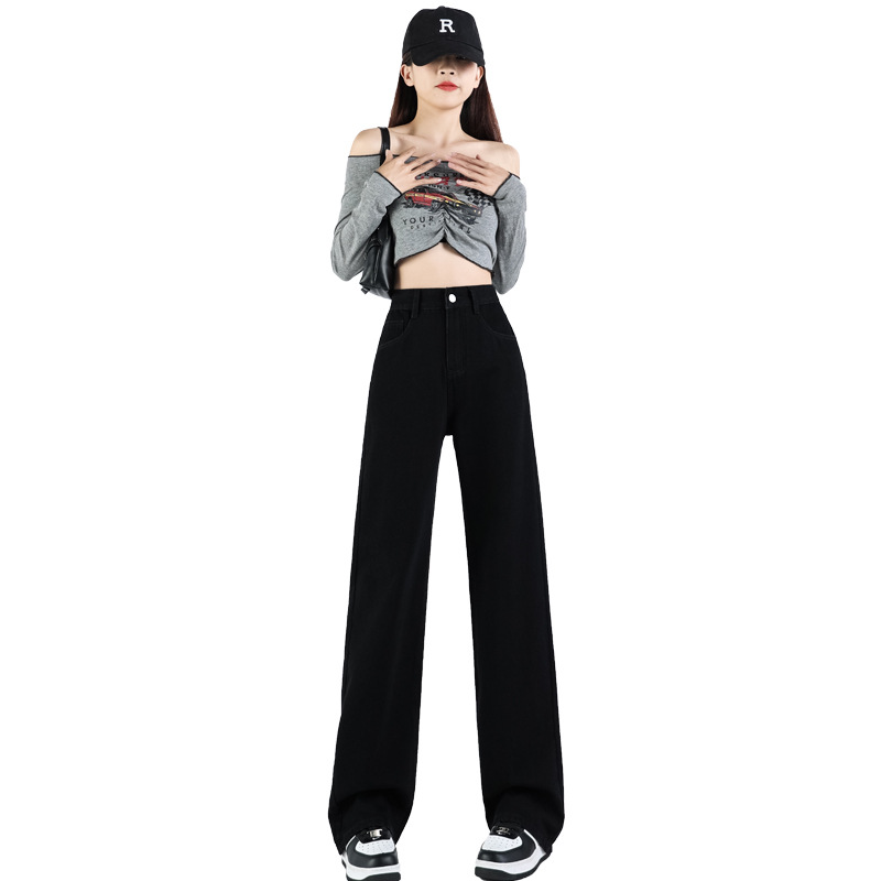铭海欧美风阔腿裤牛仔裤女秋季高个子黑色高腰显瘦拖地阔腿裤