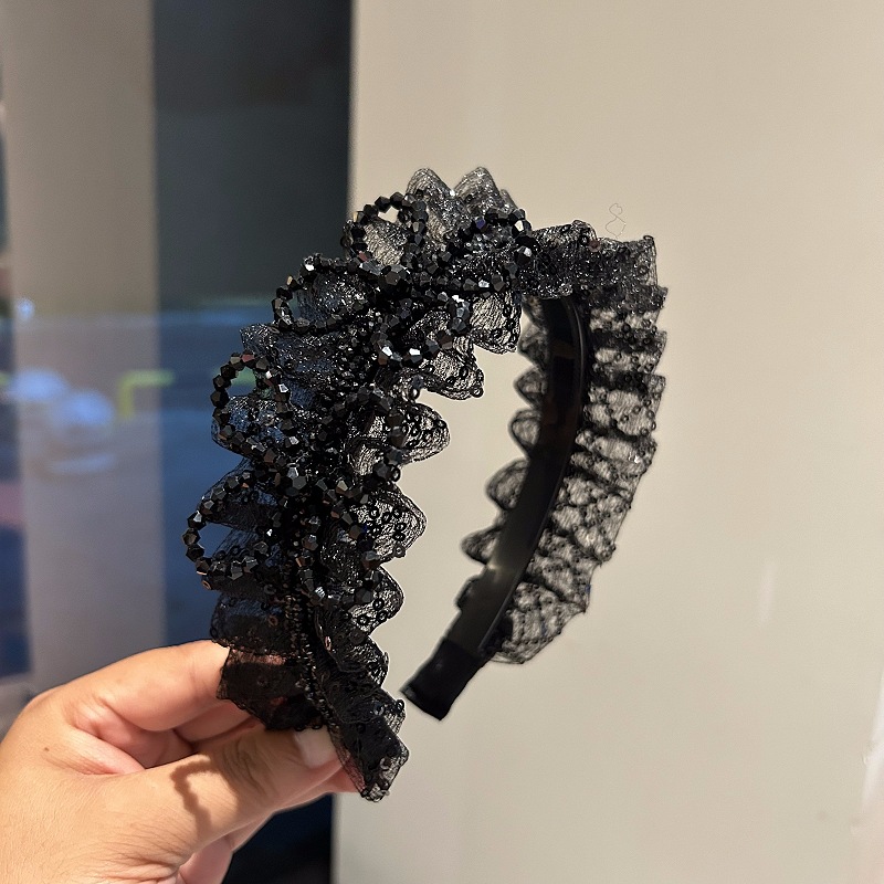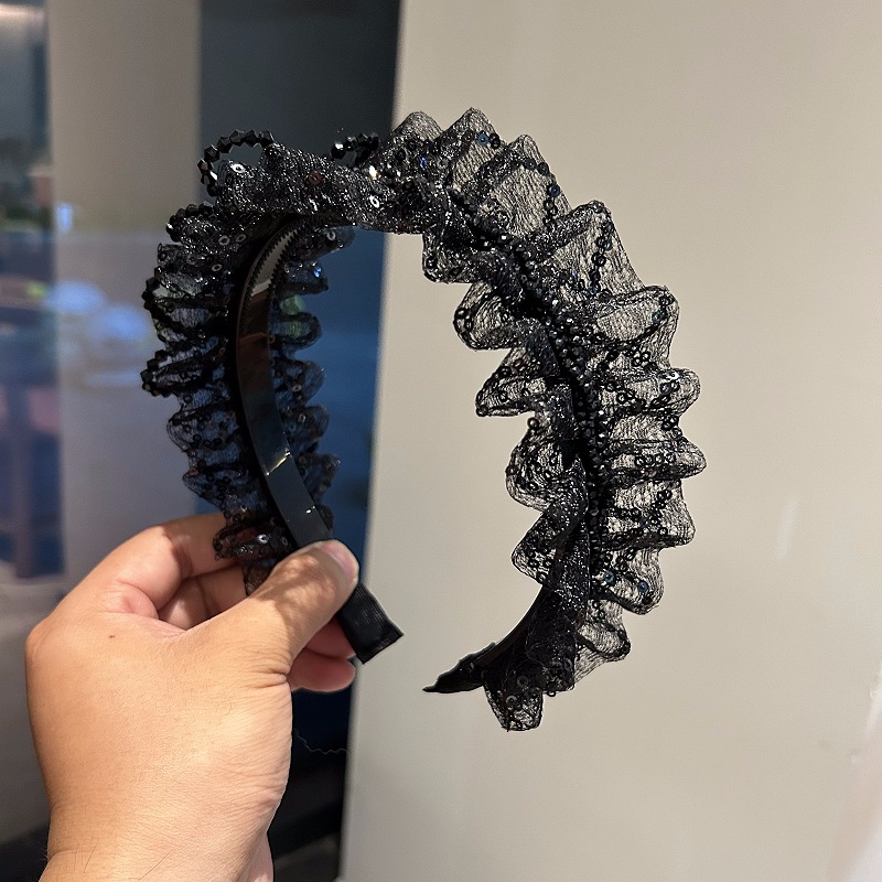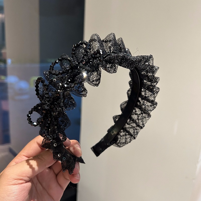 蝶夜闪耀时尚百搭发箍女宽边气质防滑蕾丝显发量高颅顶头箍头饰