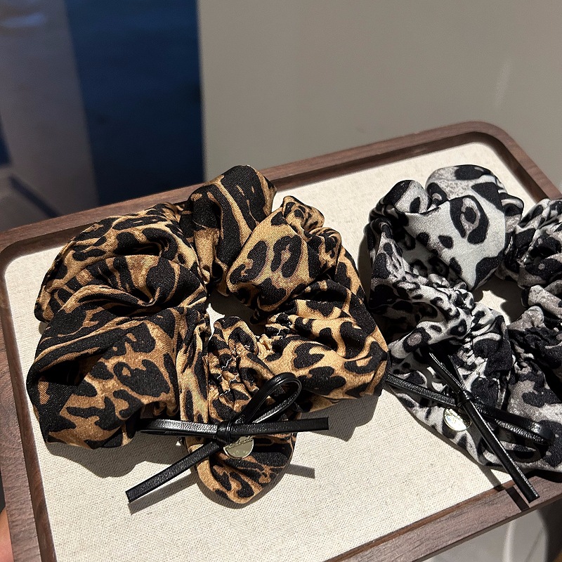 新款豹纹大肠发圈高级感蝴蝶结头绳大号高弹力高马尾发绳