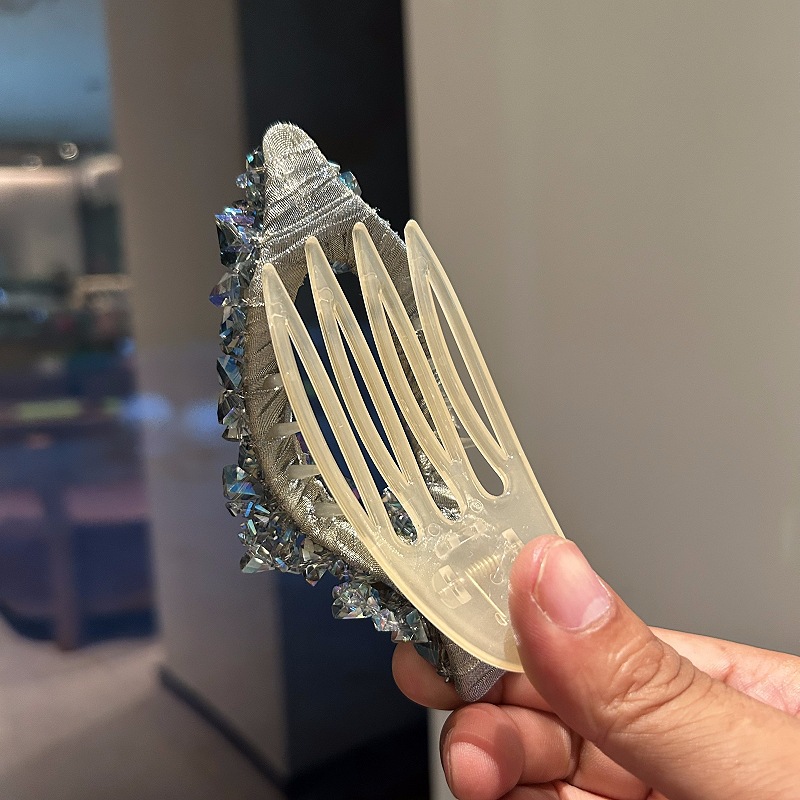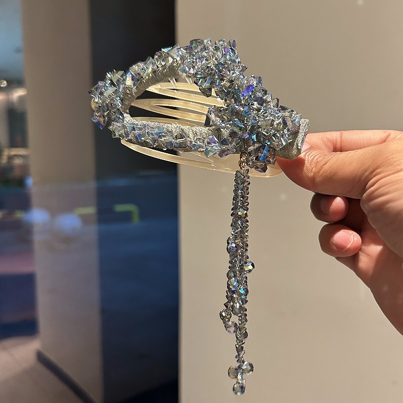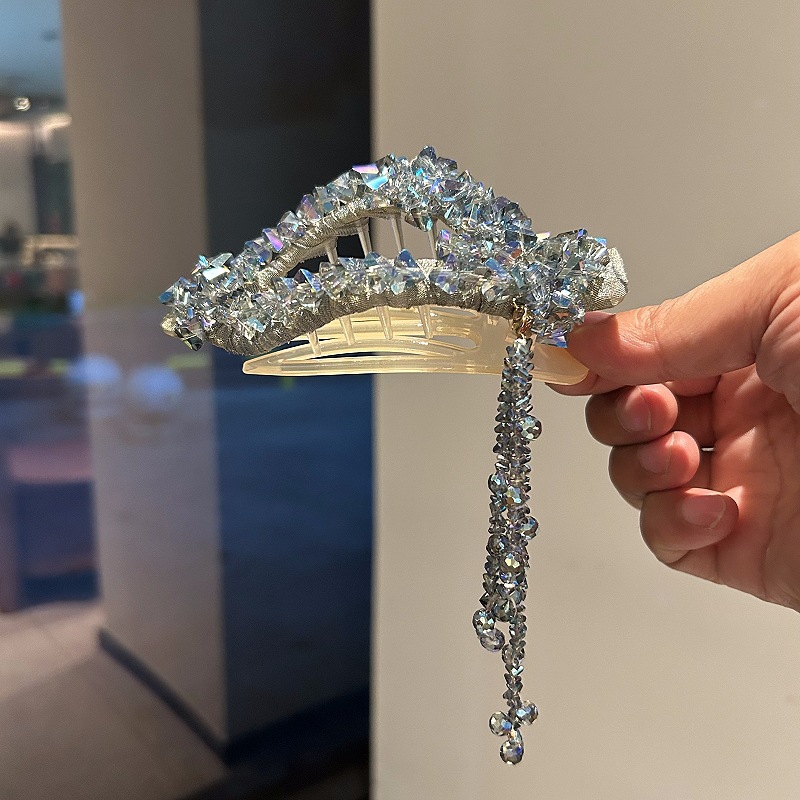 韩版轻奢水晶马尾鲨鱼夹高级感手工花朵流苏后脑勺盘发鸭嘴夹发饰