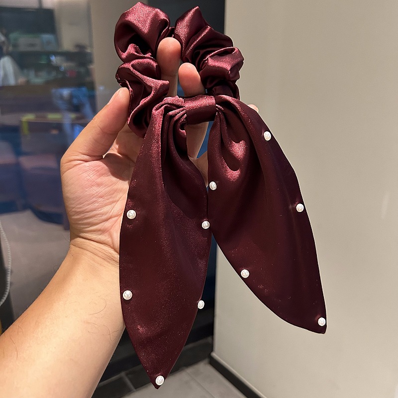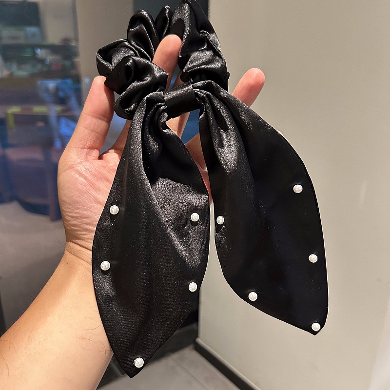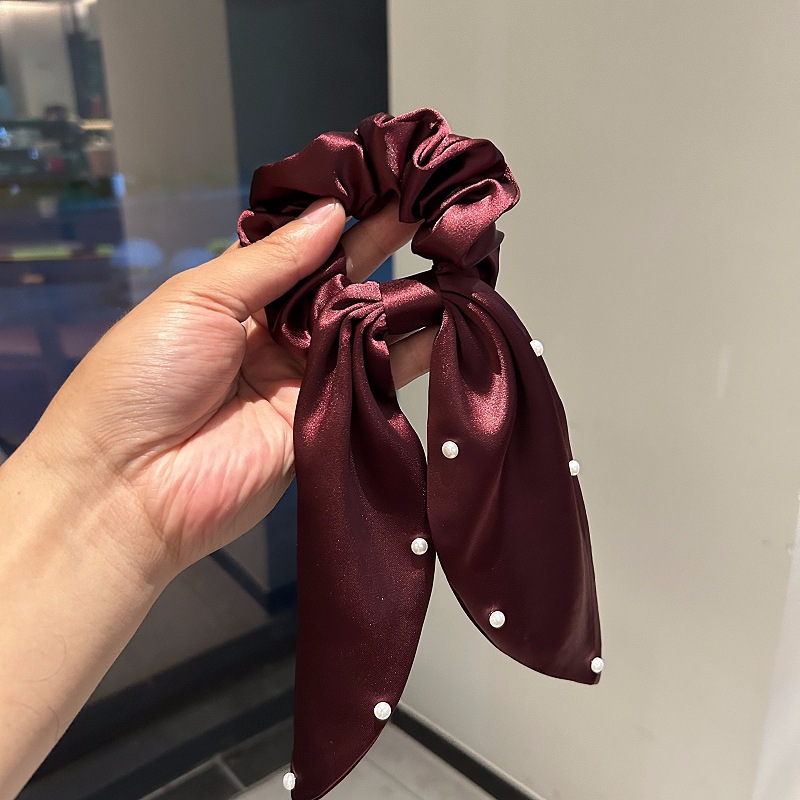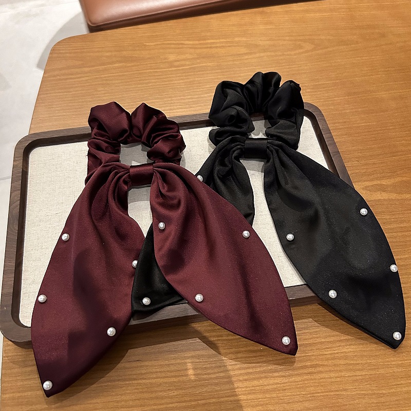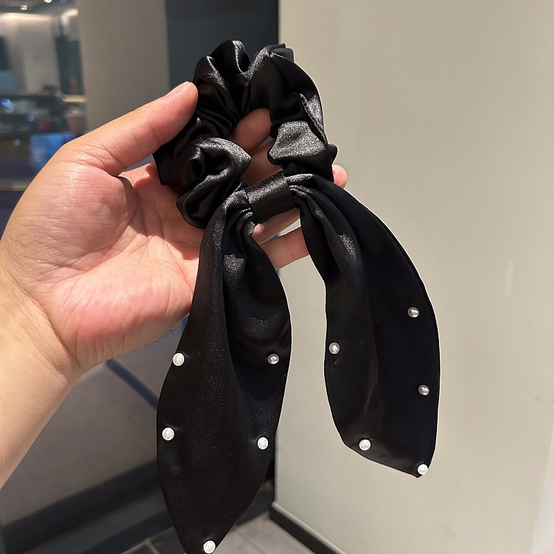 飘带缎面珍珠发圈头饰发绳气质发饰后脑勺盘发头绳韩国发带大肠圈