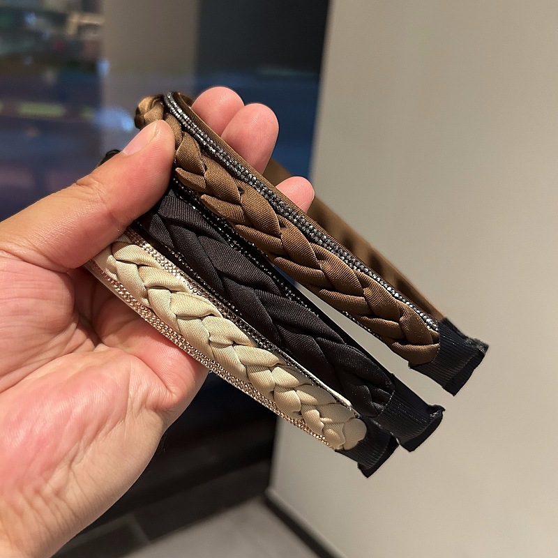 韩国小香风纯色编织麻花辫子发箍高级感网红百搭发箍烫钻头箍发捆