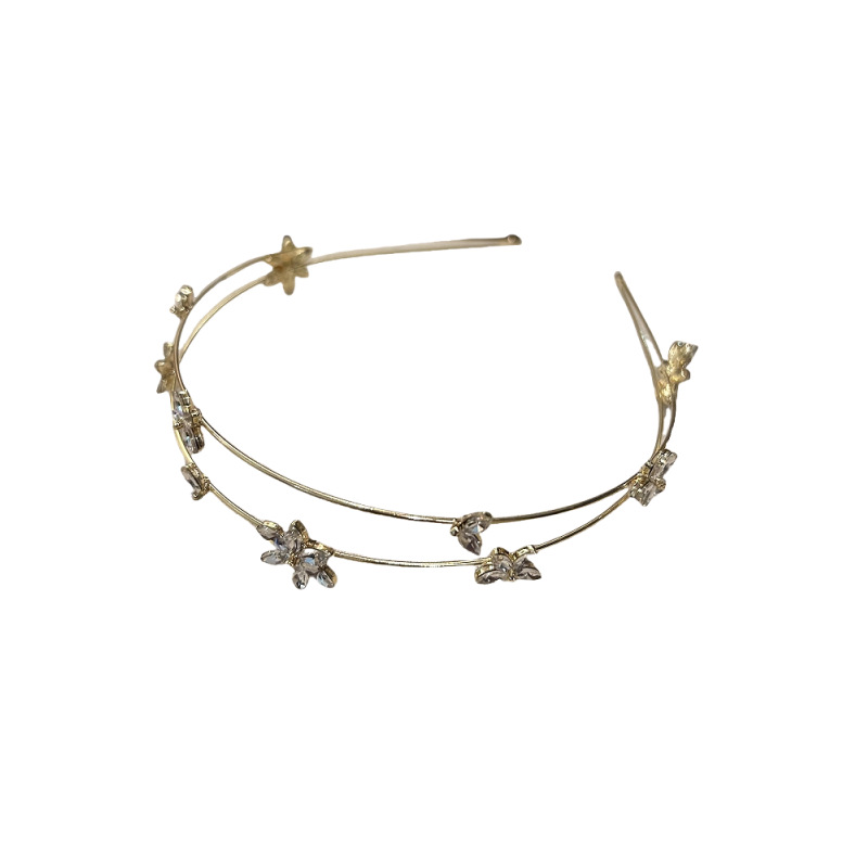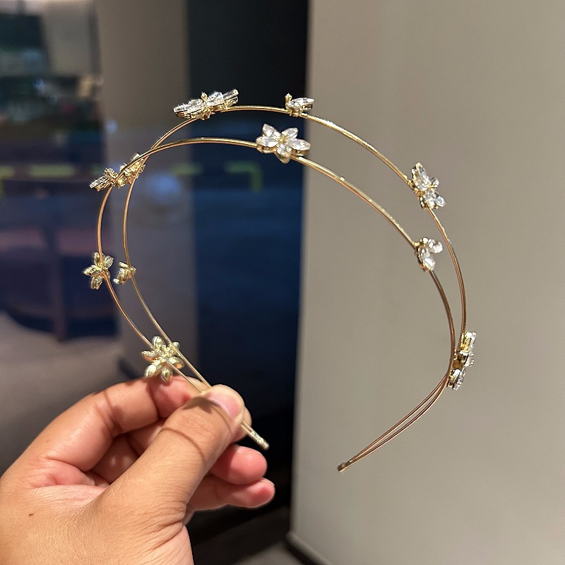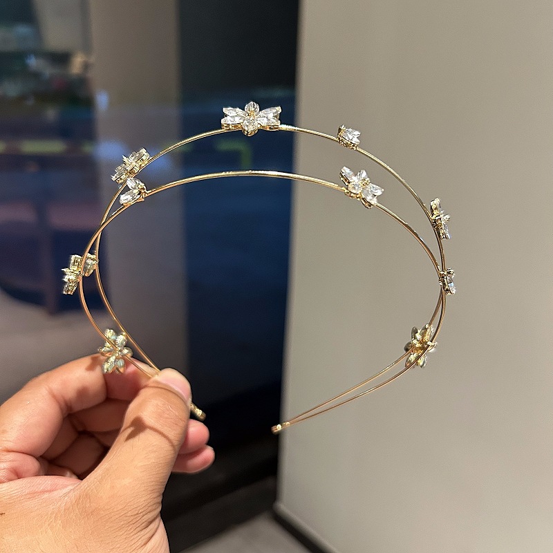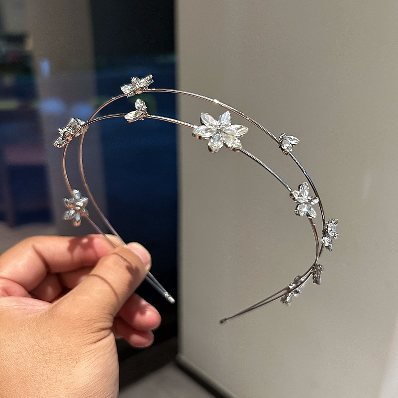 跨境锆石双层发箍生日头饰女夏天高级感花朵头箍欧美新娘婚纱发饰
