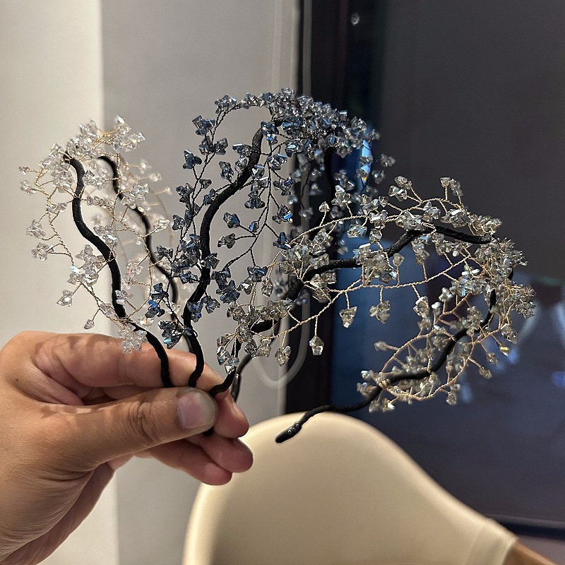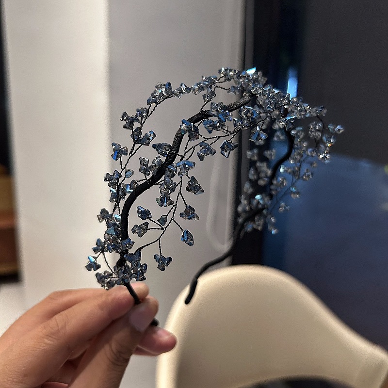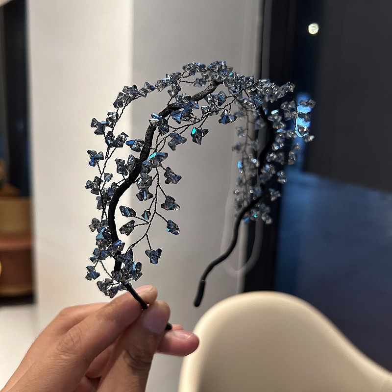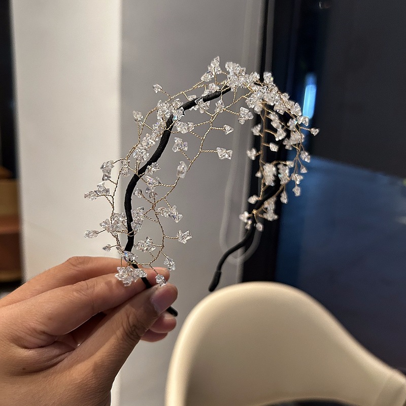 韩版夏季手工串珠发箍精致水晶编织网状新娘头箍轻奢仙女气质发饰