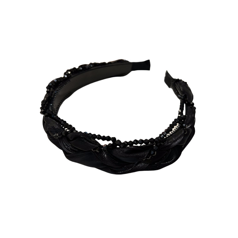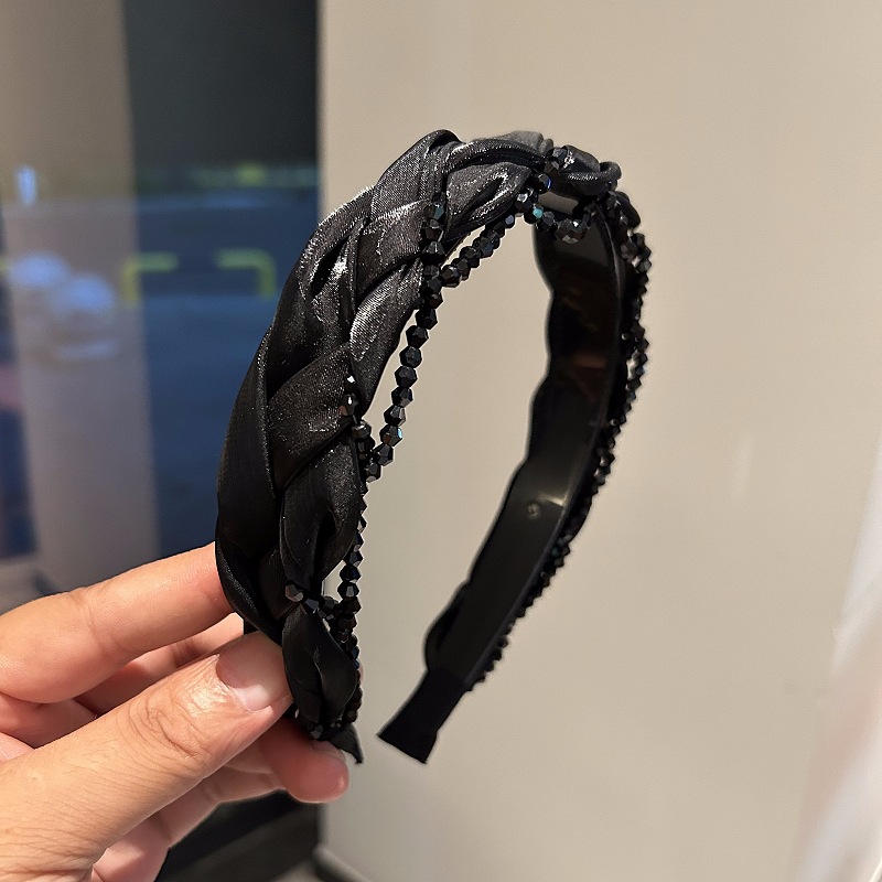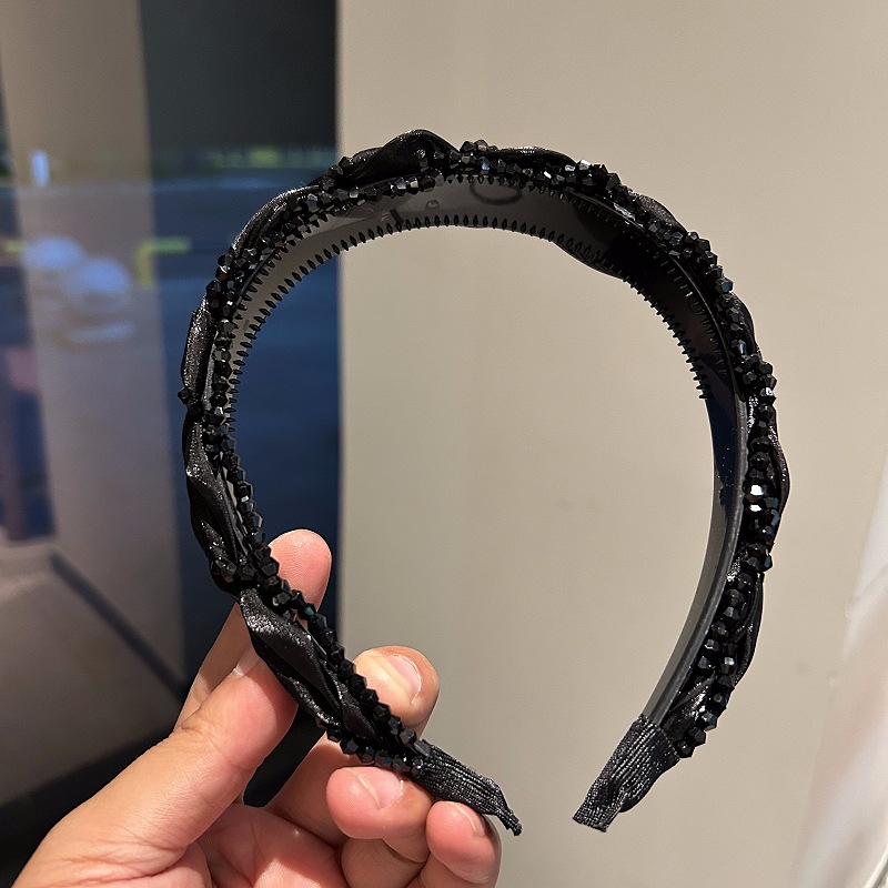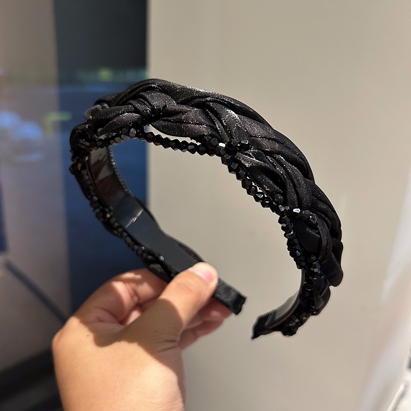 黑色水钻条编制发箍气质优雅百搭洗脸头箍轻奢高级感发饰女式头饰
