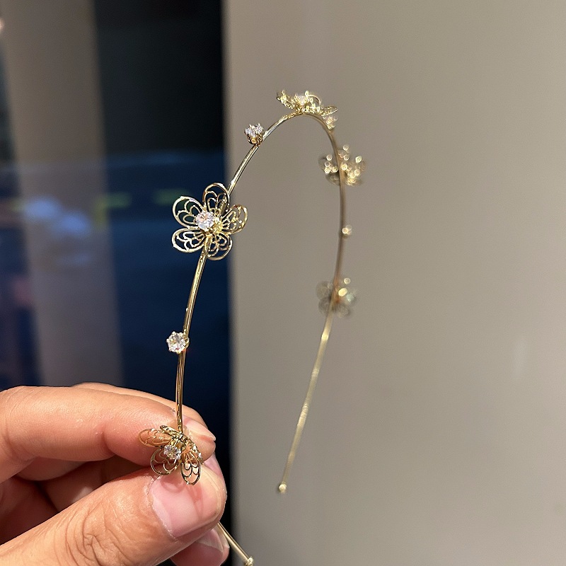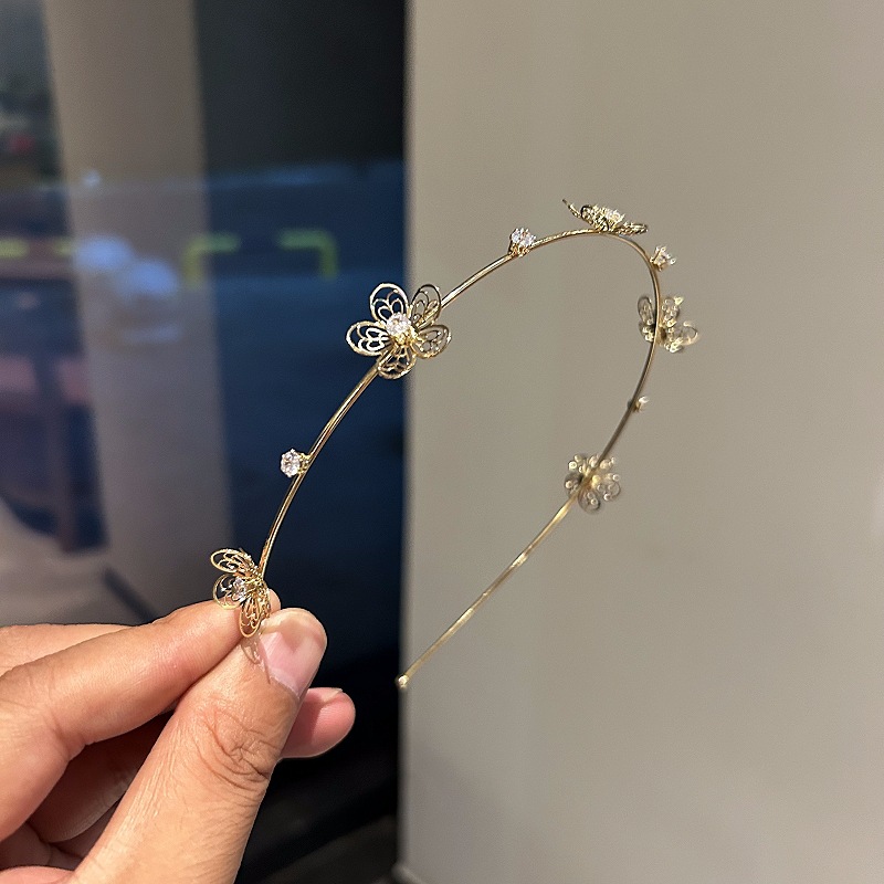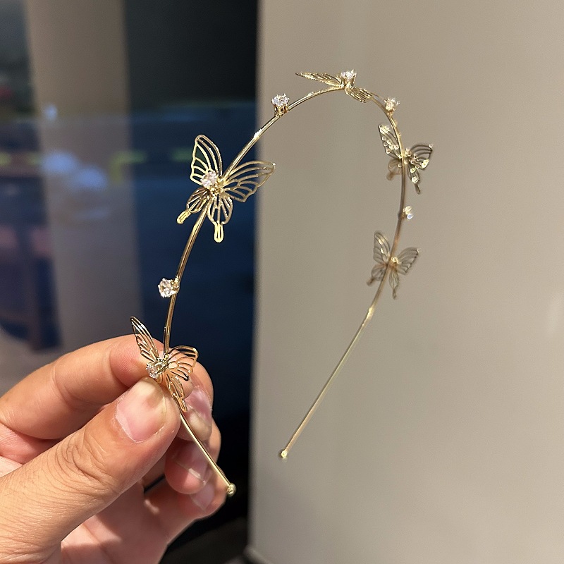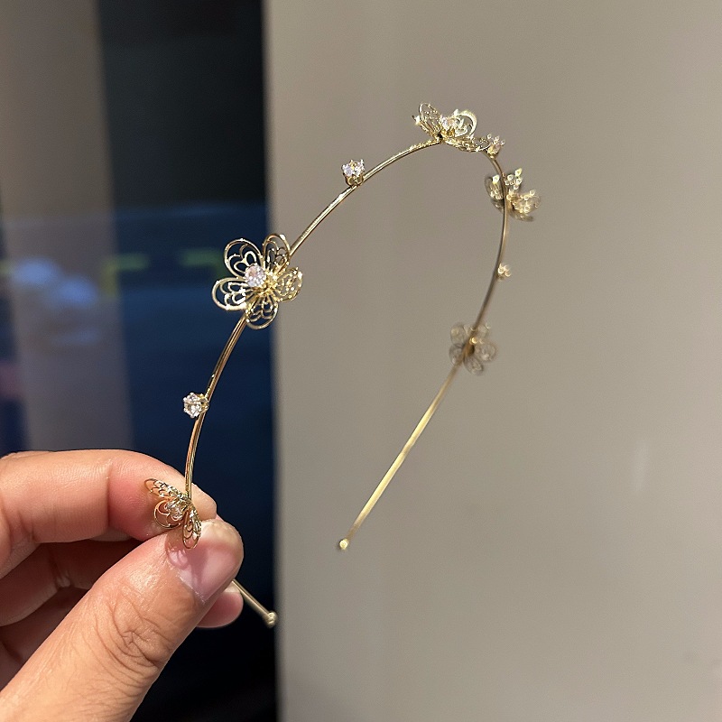 新款时尚新款水钻蝴蝶结发箍镶锆石双层头箍压发镂空蝴蝶潮人发饰