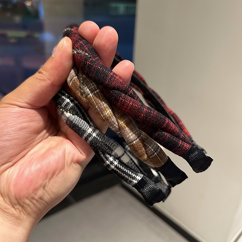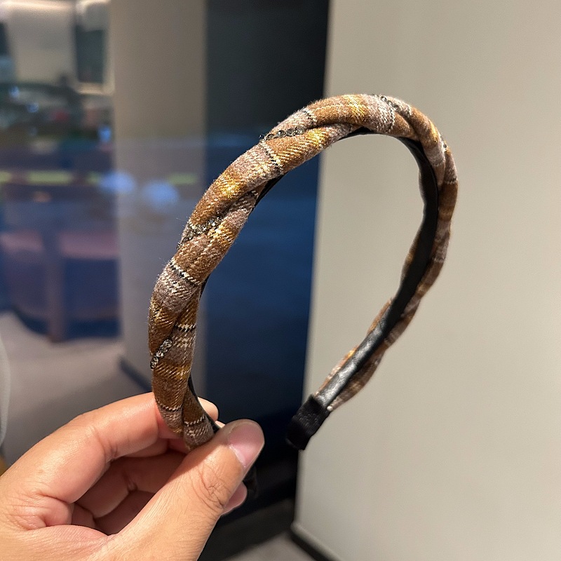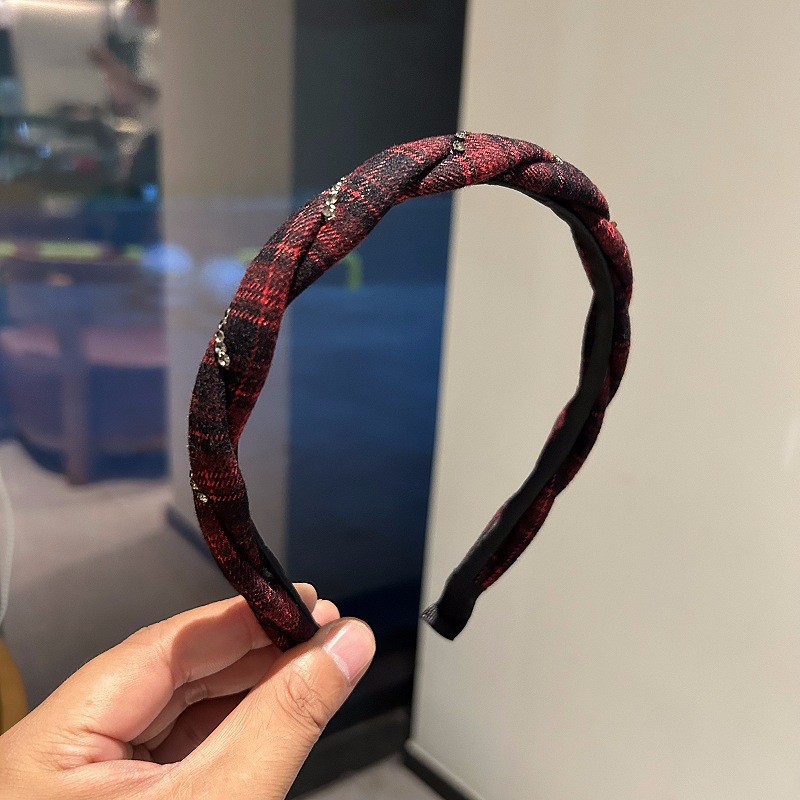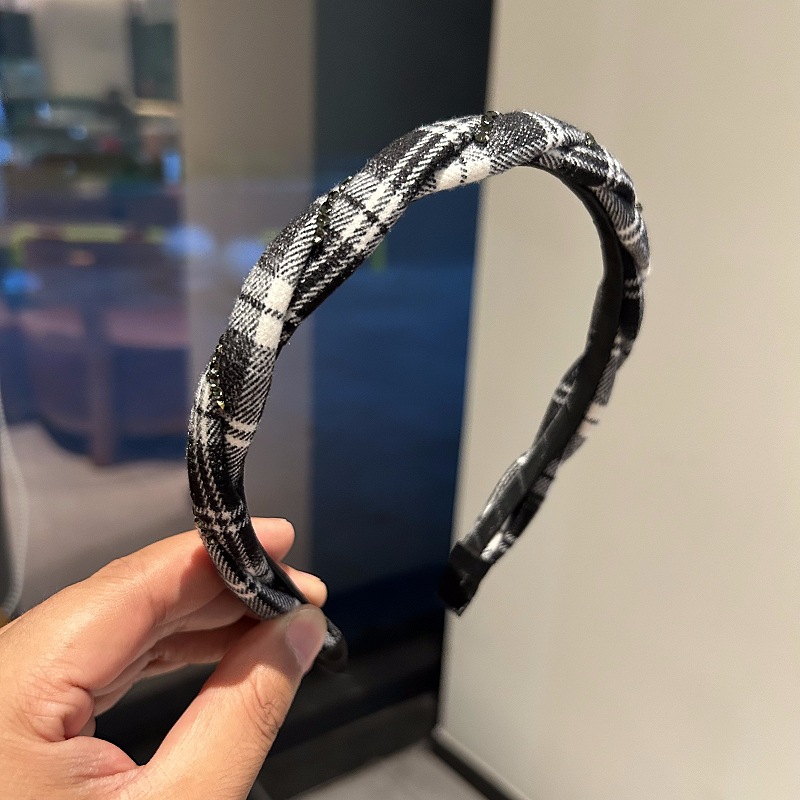 新款格纹复古秋季新款气质头箍麻花辫子水钻印花高级感女发箍