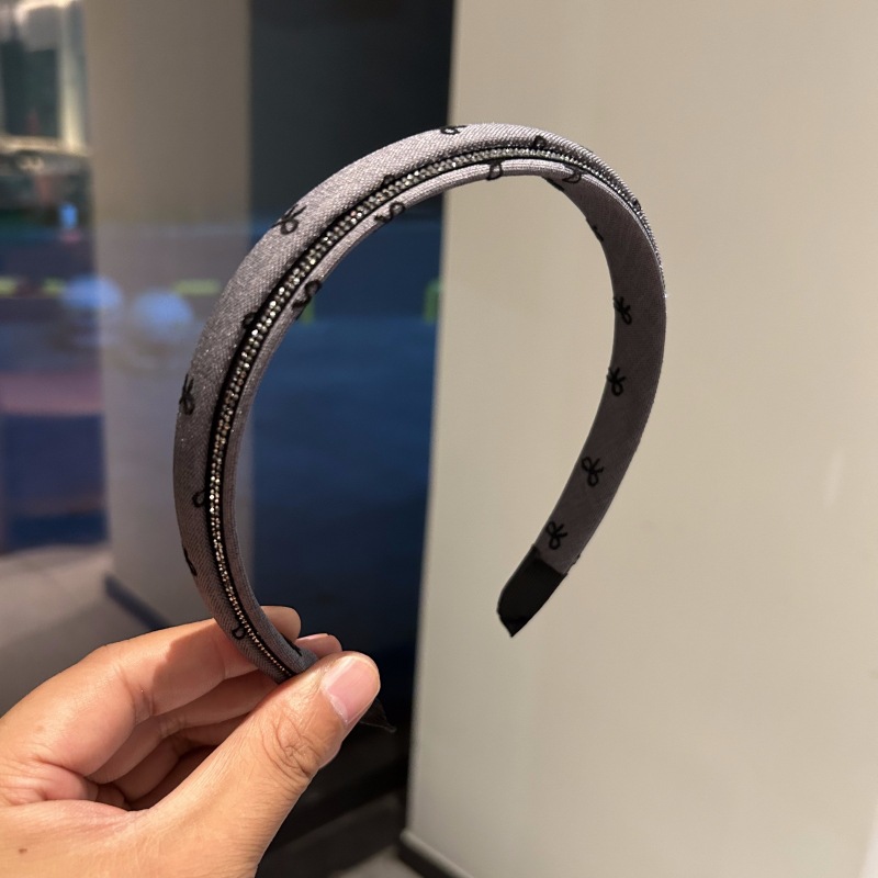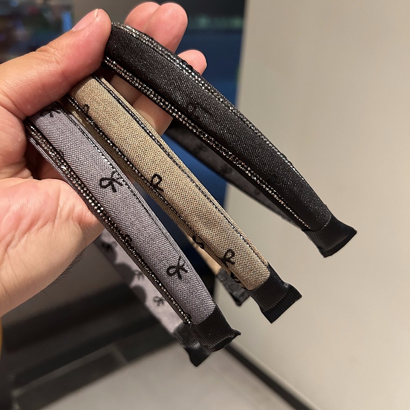 法式蝴蝶结牛仔风布艺镶钻高级感发箍复古时尚高颅顶压发头箍发饰