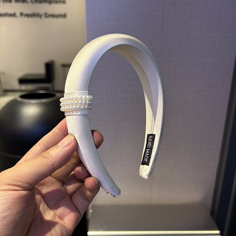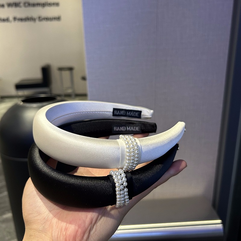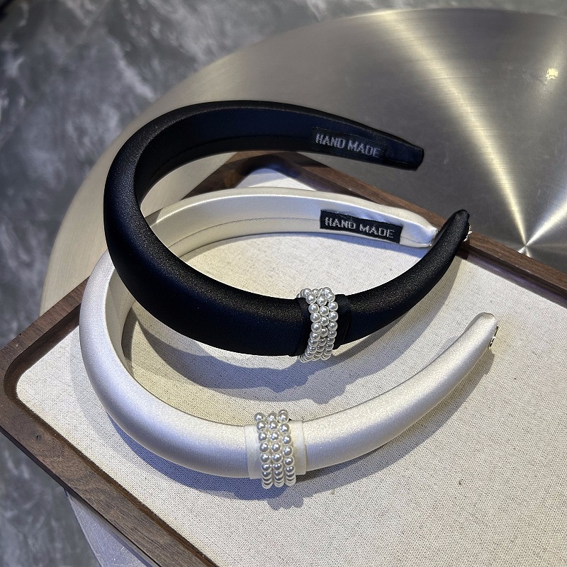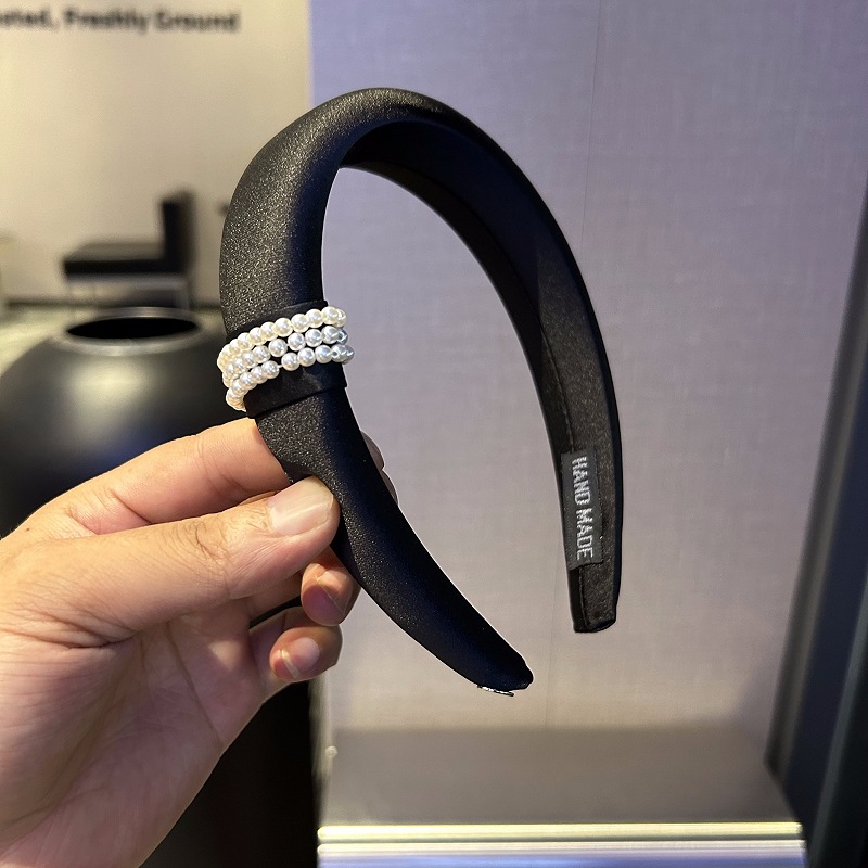 黑色珍珠发箍手工缝制高级感简约缎面轻奢头箍气质发饰