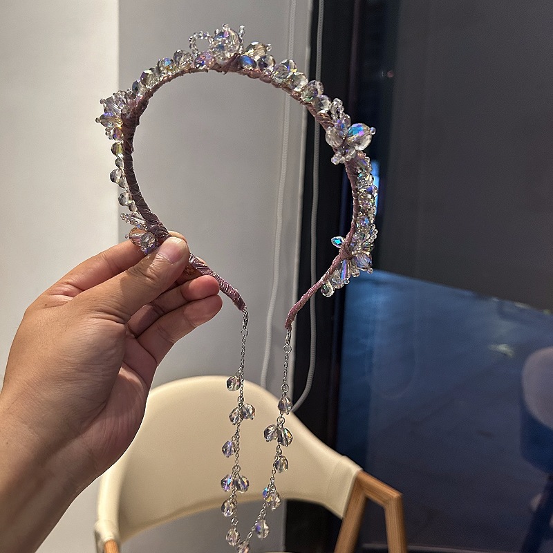 高级感水晶流苏发箍发卡新款法式重工水钻头箍贵妇千金头箍
