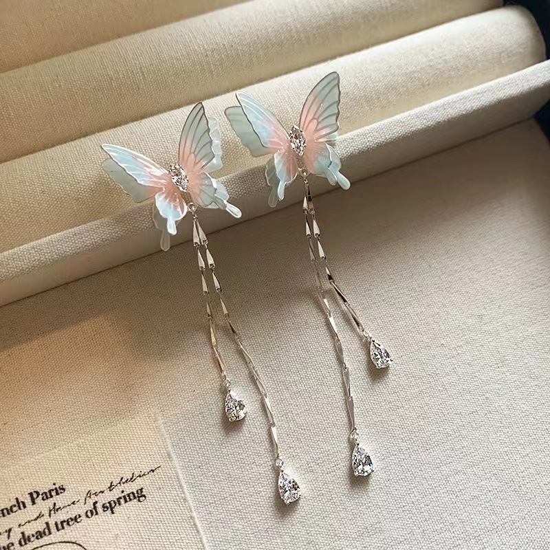 新款蝴蝶梦幻流苏耳骨夹小众设计耳环独特高级气质耳饰轻奢耳钉
