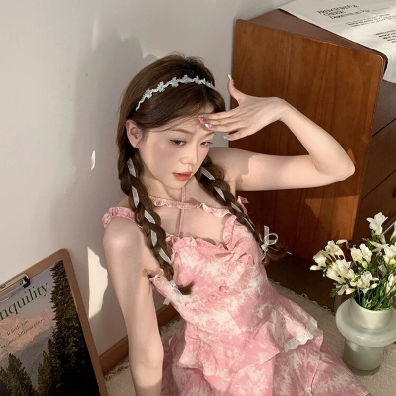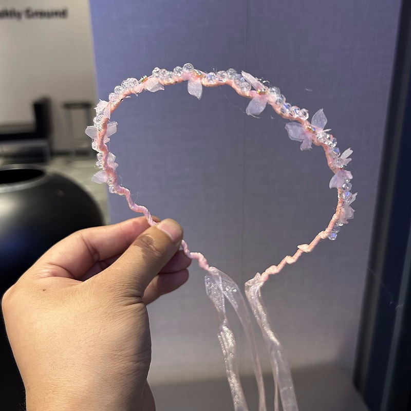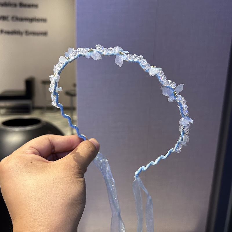 超仙蓝色蝴蝶发箍女甜美高级感编发头箍飘带一体气质丝带发卡头饰