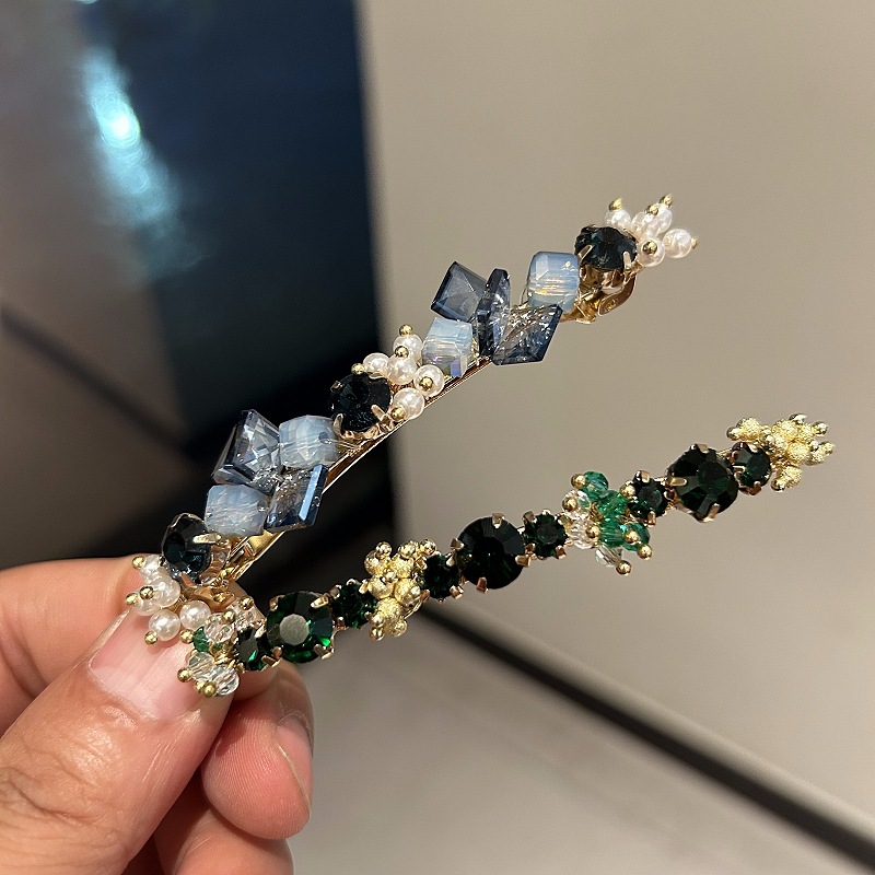 韩国气质简约百搭发夹高档亮钻水晶边夹手工编织鸭嘴夹刘海夹