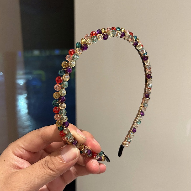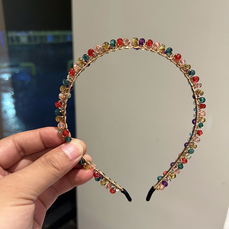 韩国彩色水晶串珠发箍女超仙美细头箍女款ins压发感发卡头饰