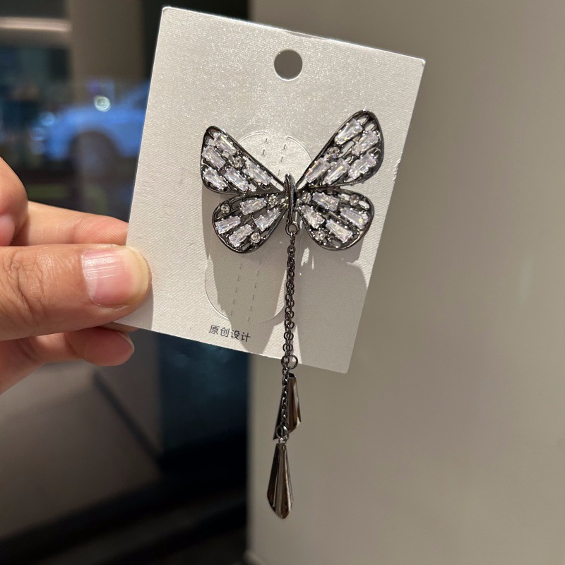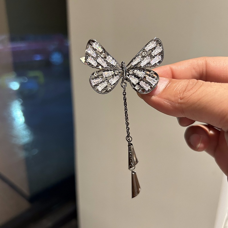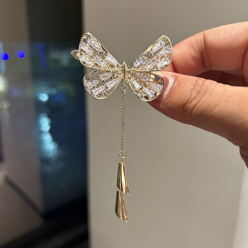 新中式国潮锆石蝴蝶流苏发夹女复古民族风盘发发饰配汉服古装头饰