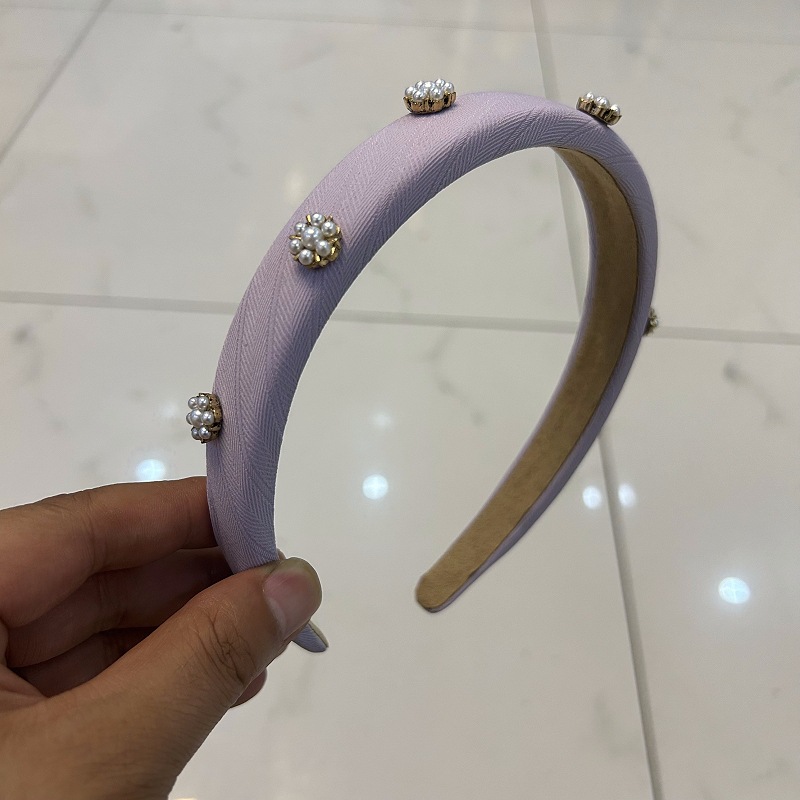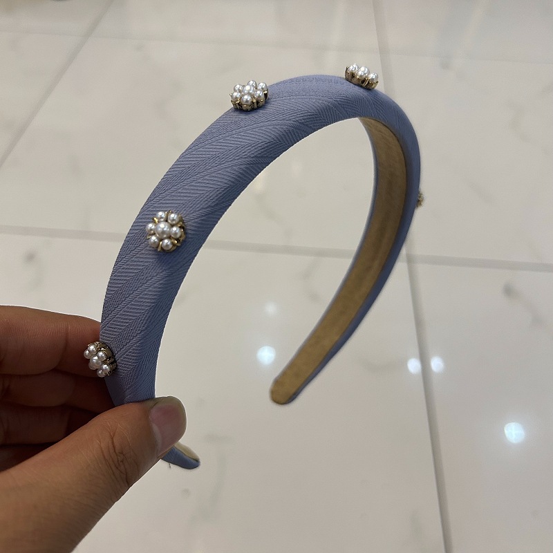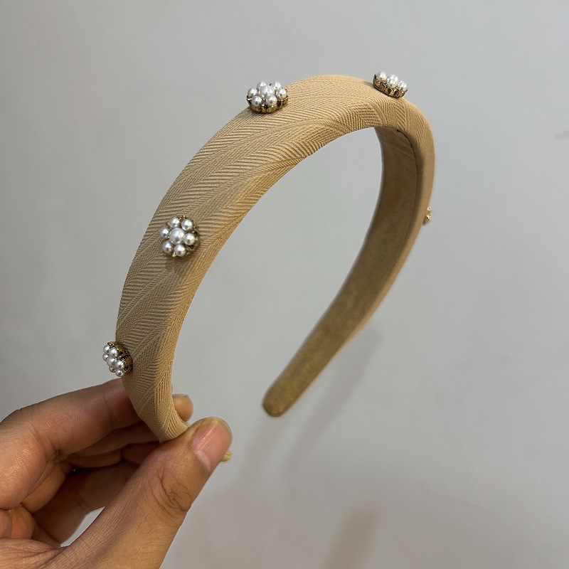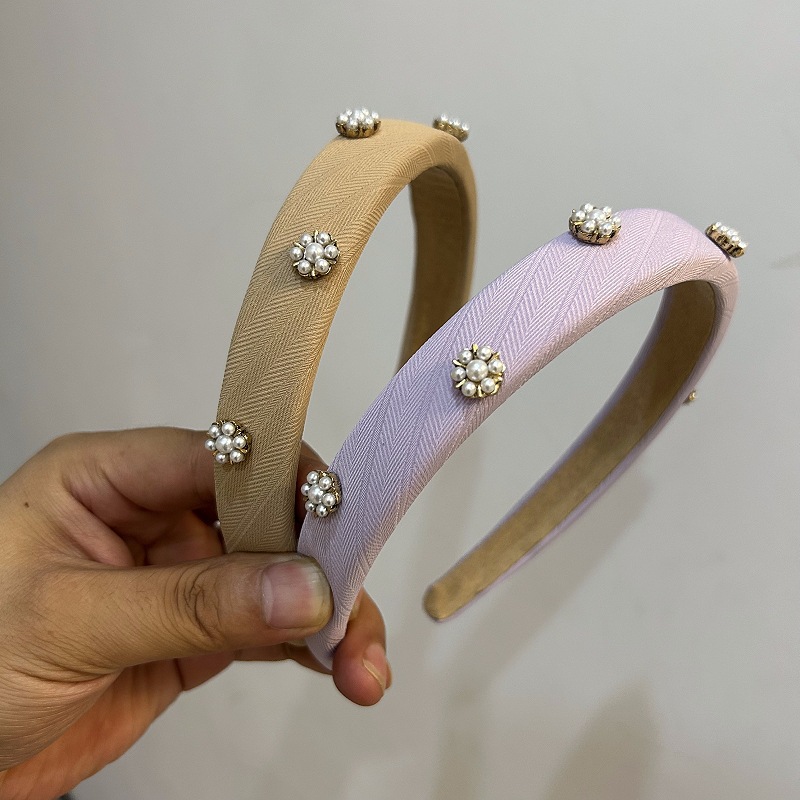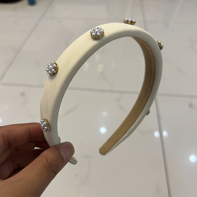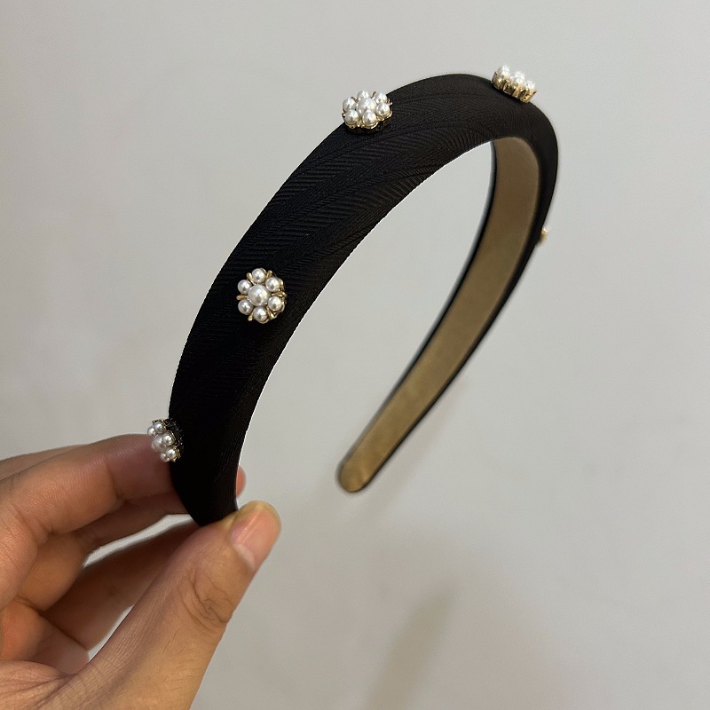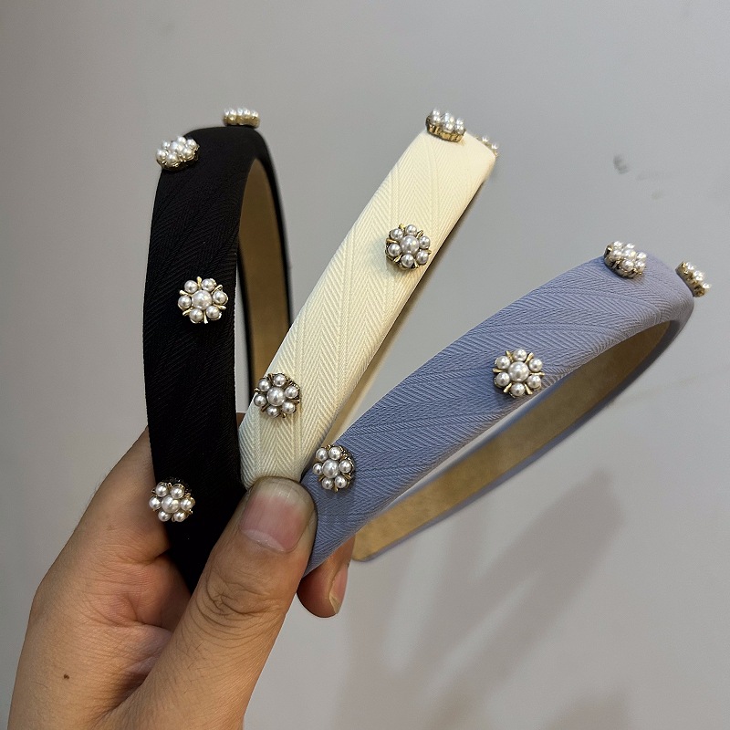 气质珍珠立体装饰发箍法式复古窄边头箍女宽边镶钻头扣洗脸发卡