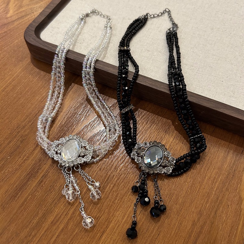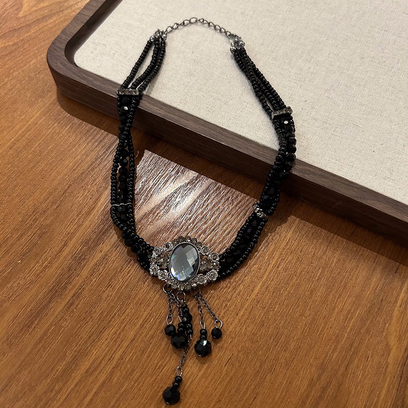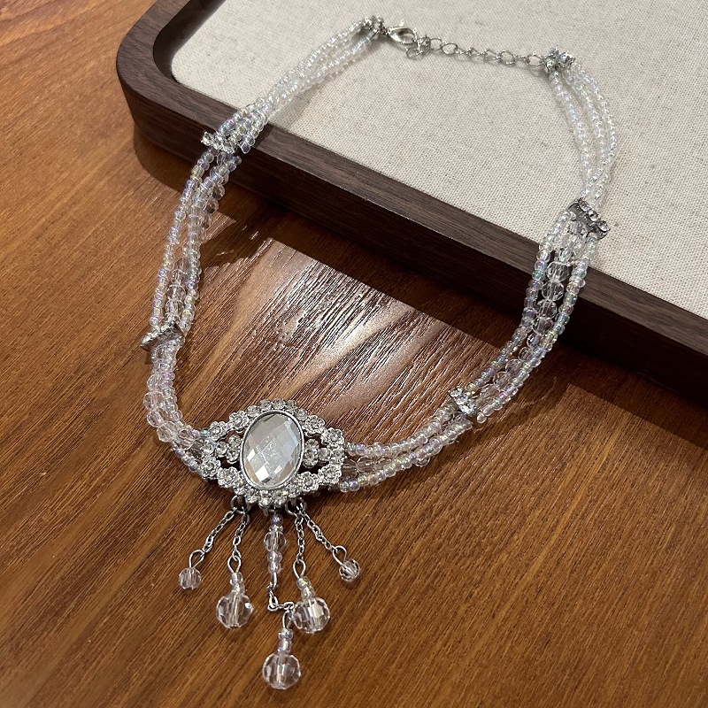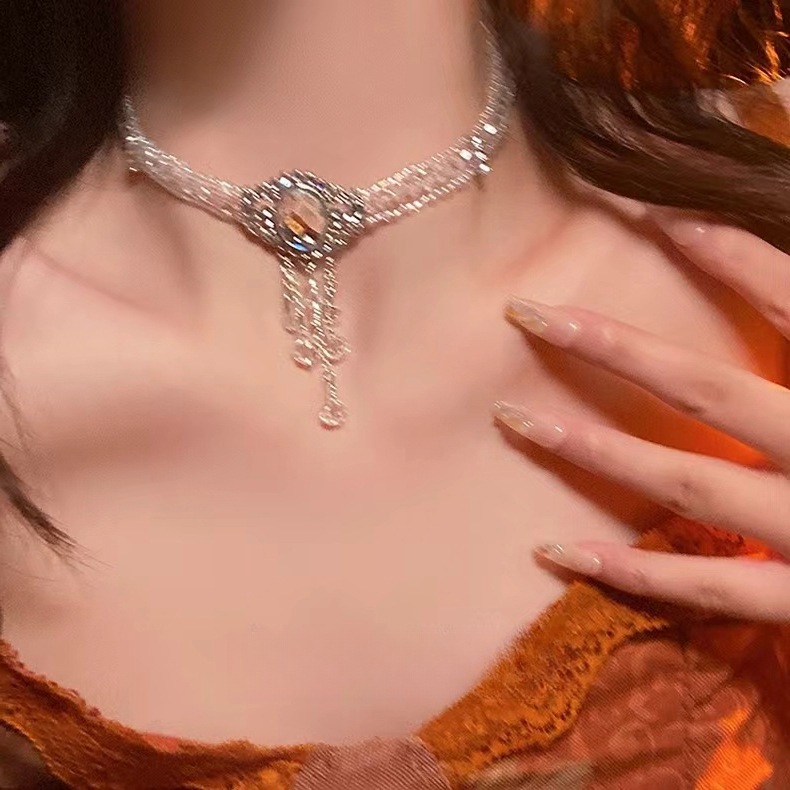 轻奢项链优雅水晶巴洛克choker宝石流苏简约气质吊坠项链女锁骨链