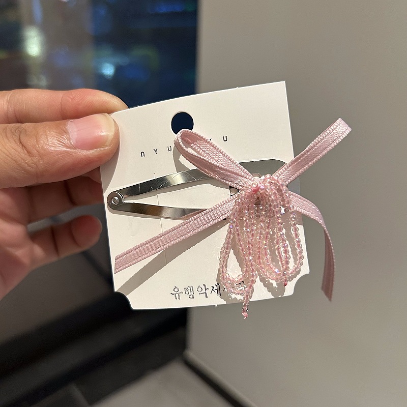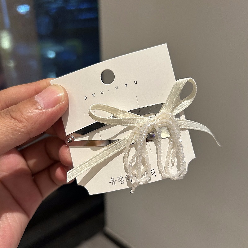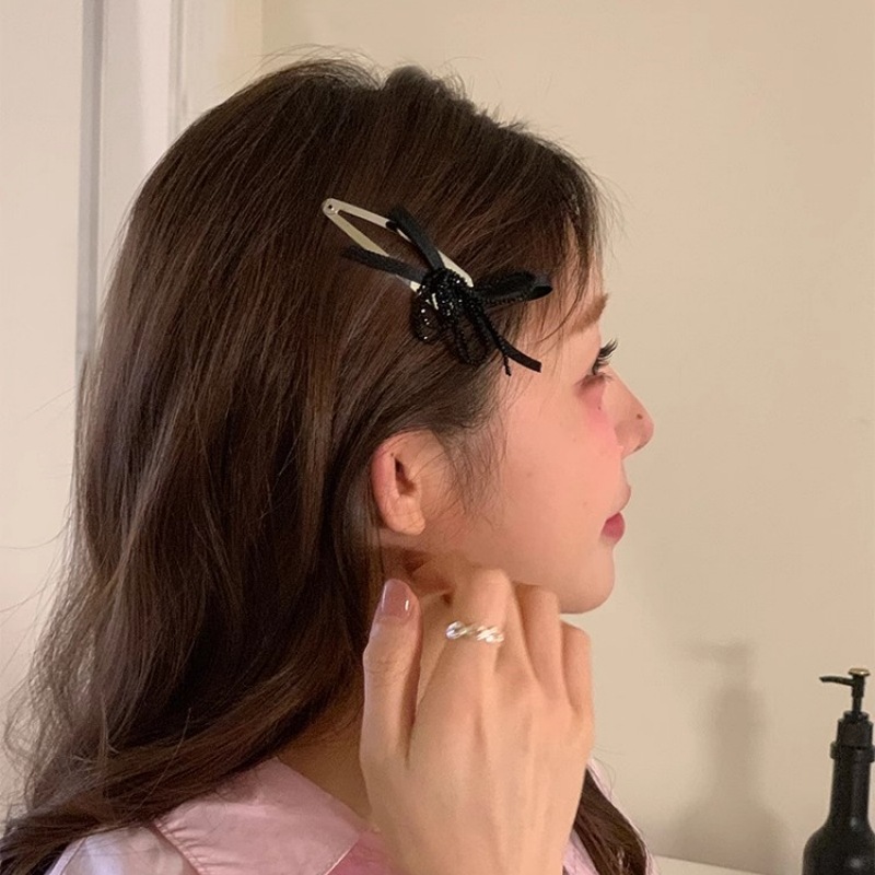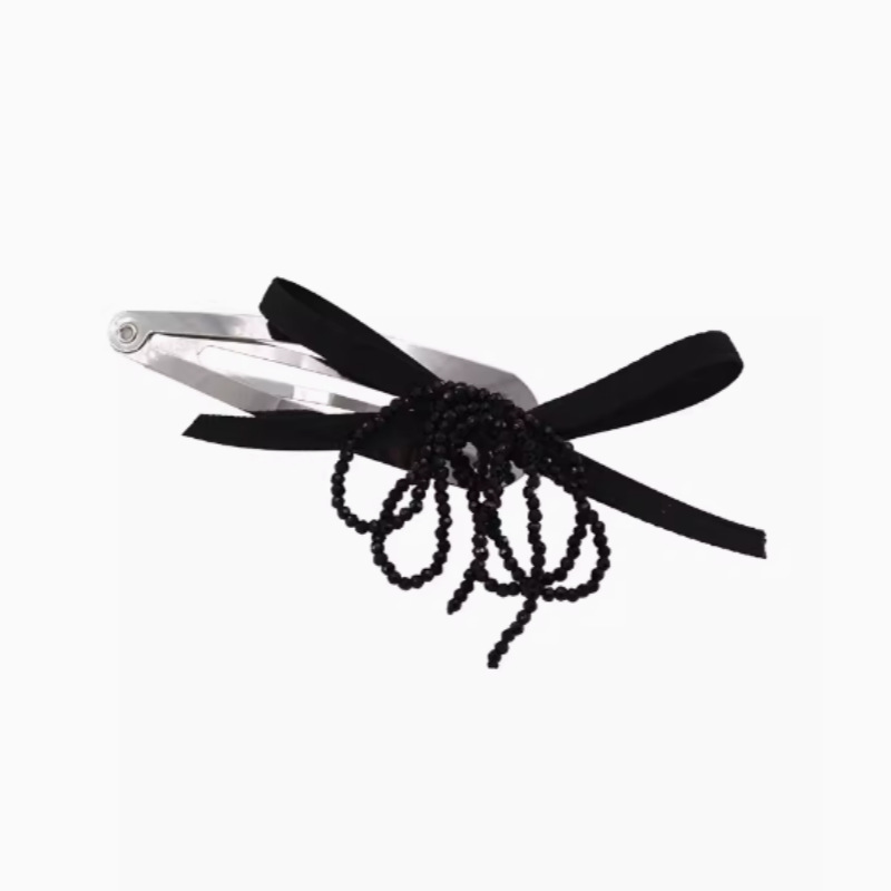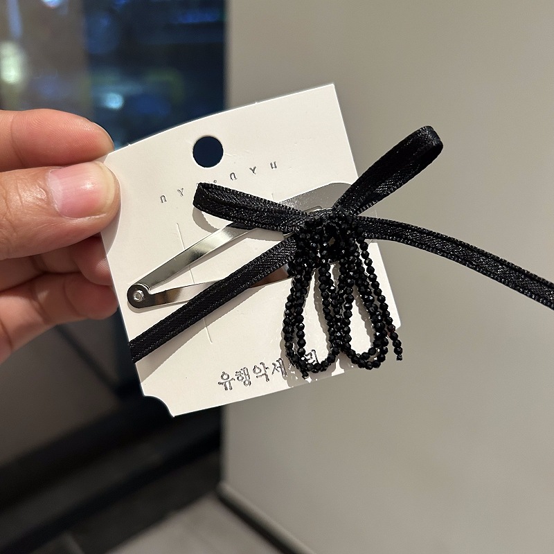 黑色串珠蝴蝶结流苏发夹女新款小众轻奢高级刘海夹bb夹发饰