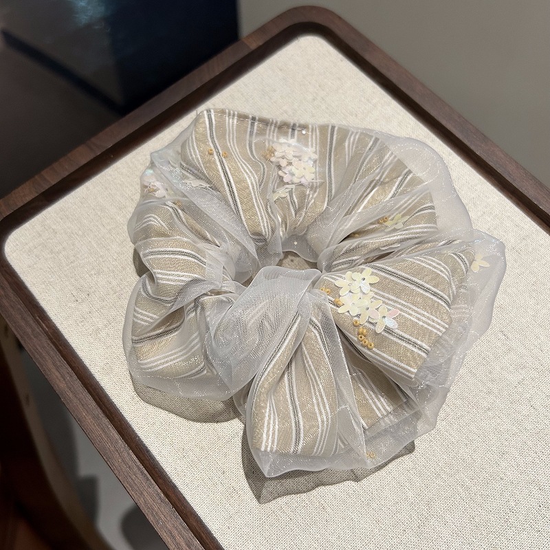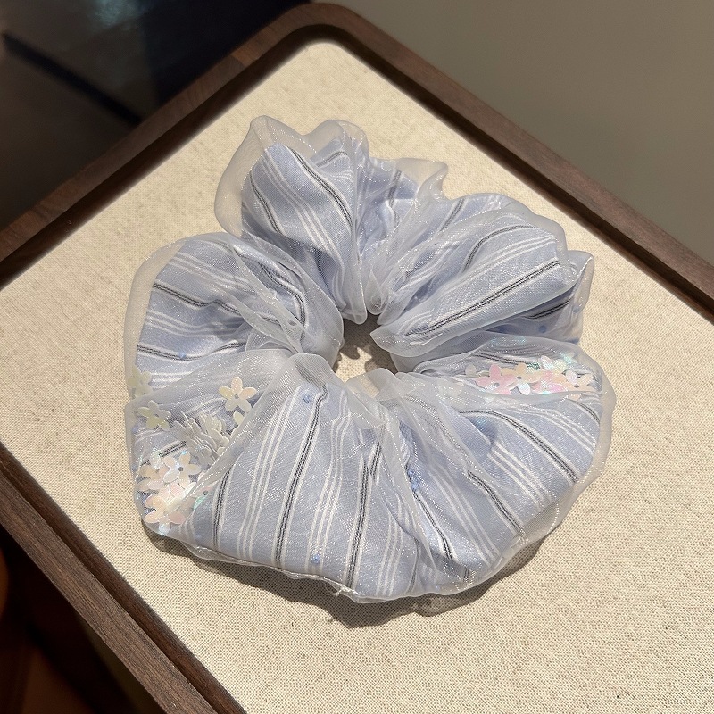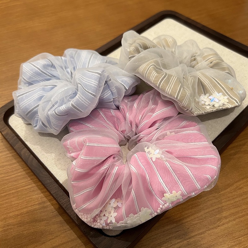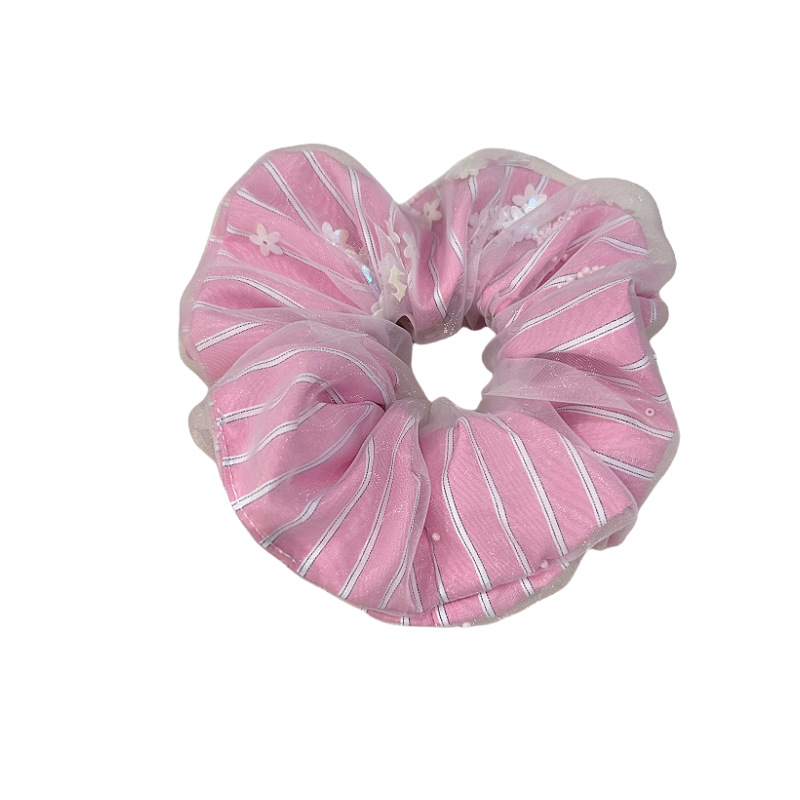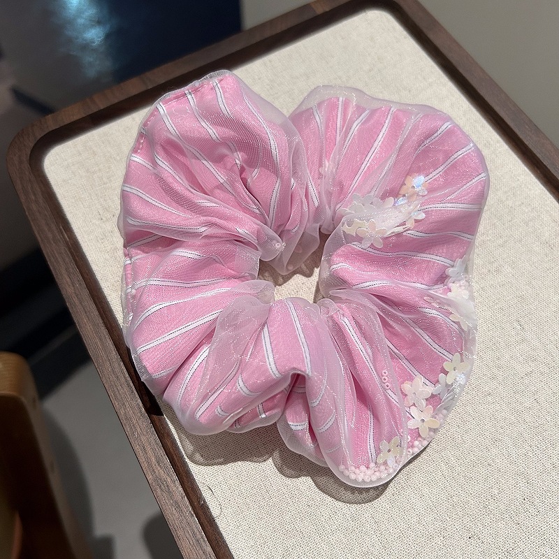 甜美精灵花园小花亮片薄纱条纹布艺温柔发圈大肠高级感发饰新款